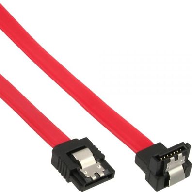 • InLine® SATA Anschlusskabel abgewinkelt, mit Sicherheitslasche, 0,5m, rot