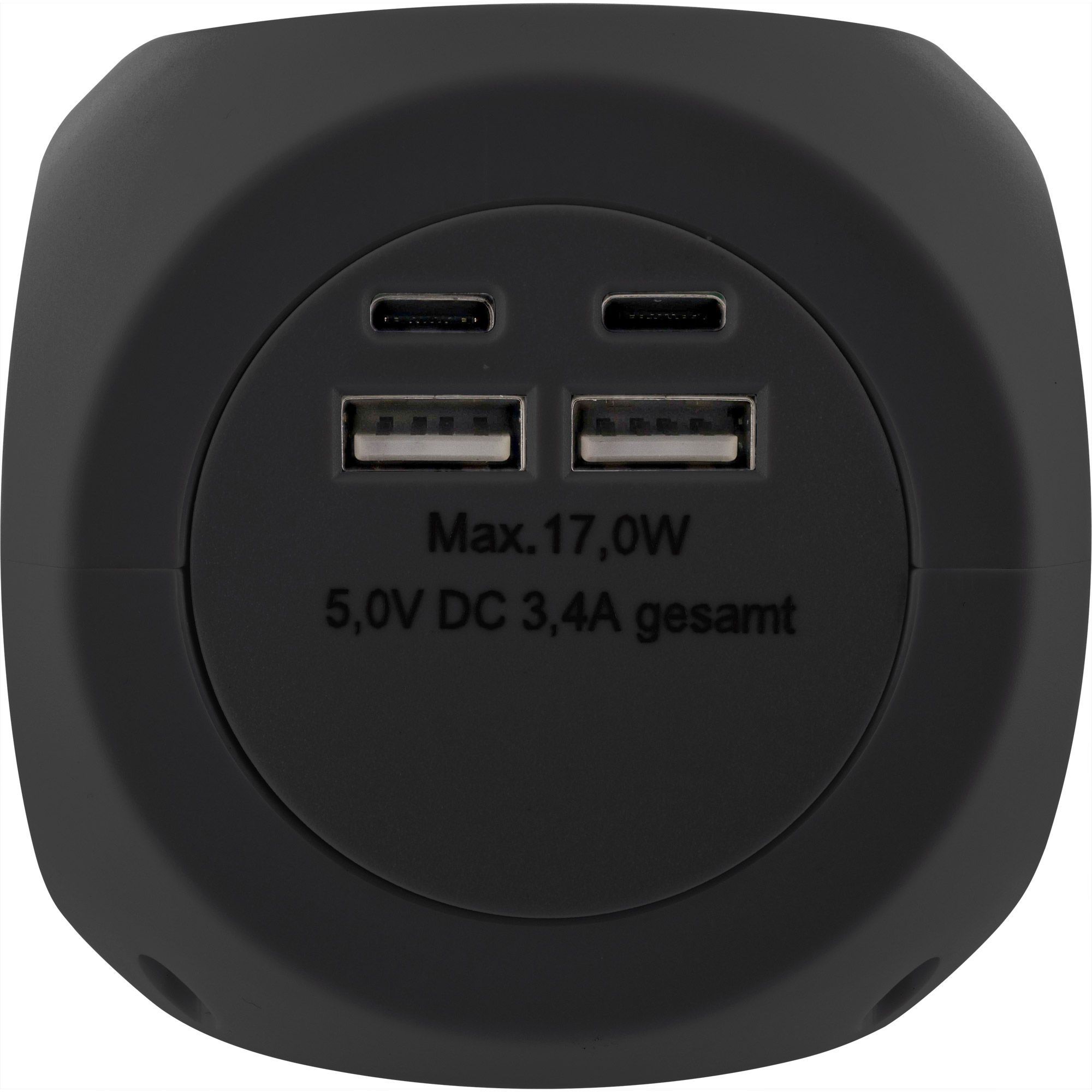 InLine® InLine® Charging Cube, 3x Schutzkontakt, 2x USB-C, 2x USB-A, schwarz, 2m