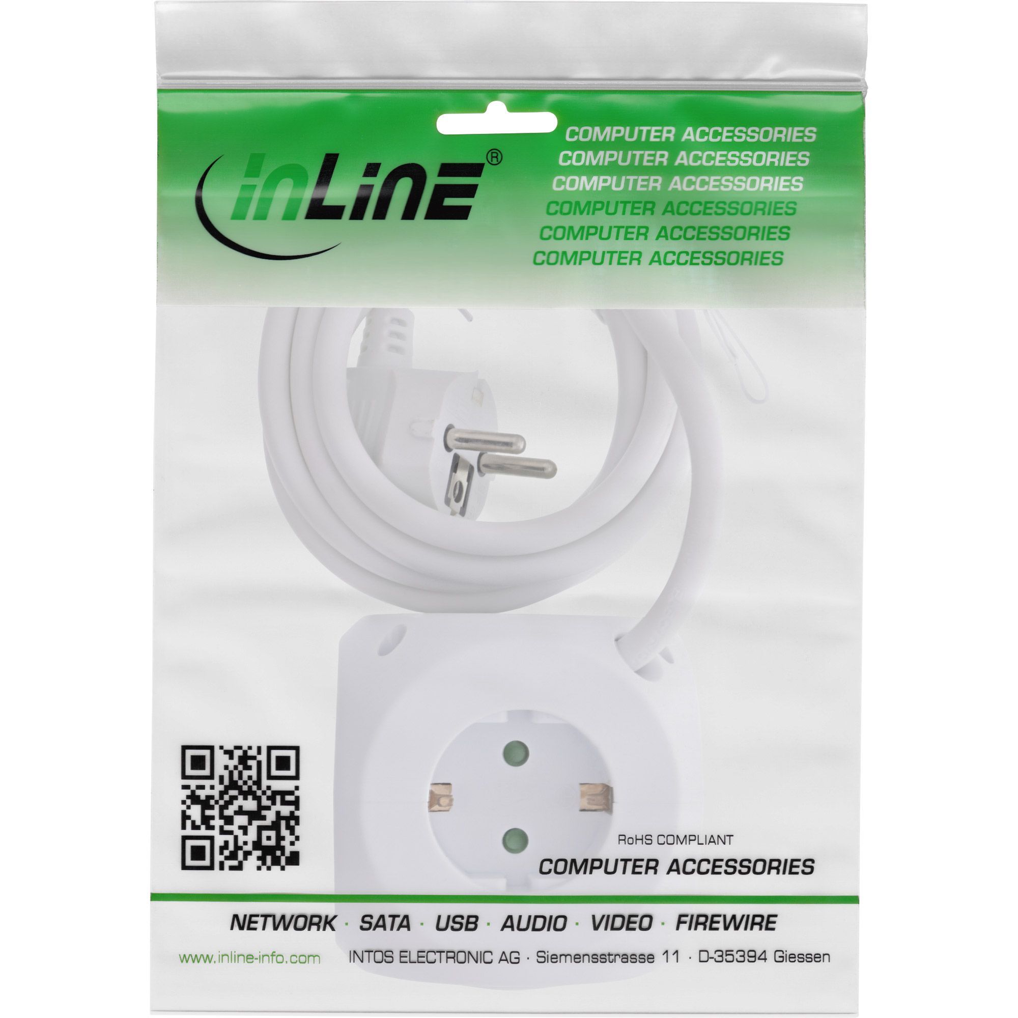 InLine® InLine® Charging Cube, 3x Schutzkontakt, 2x USB-C, 2x USB-A, weiß, 2m