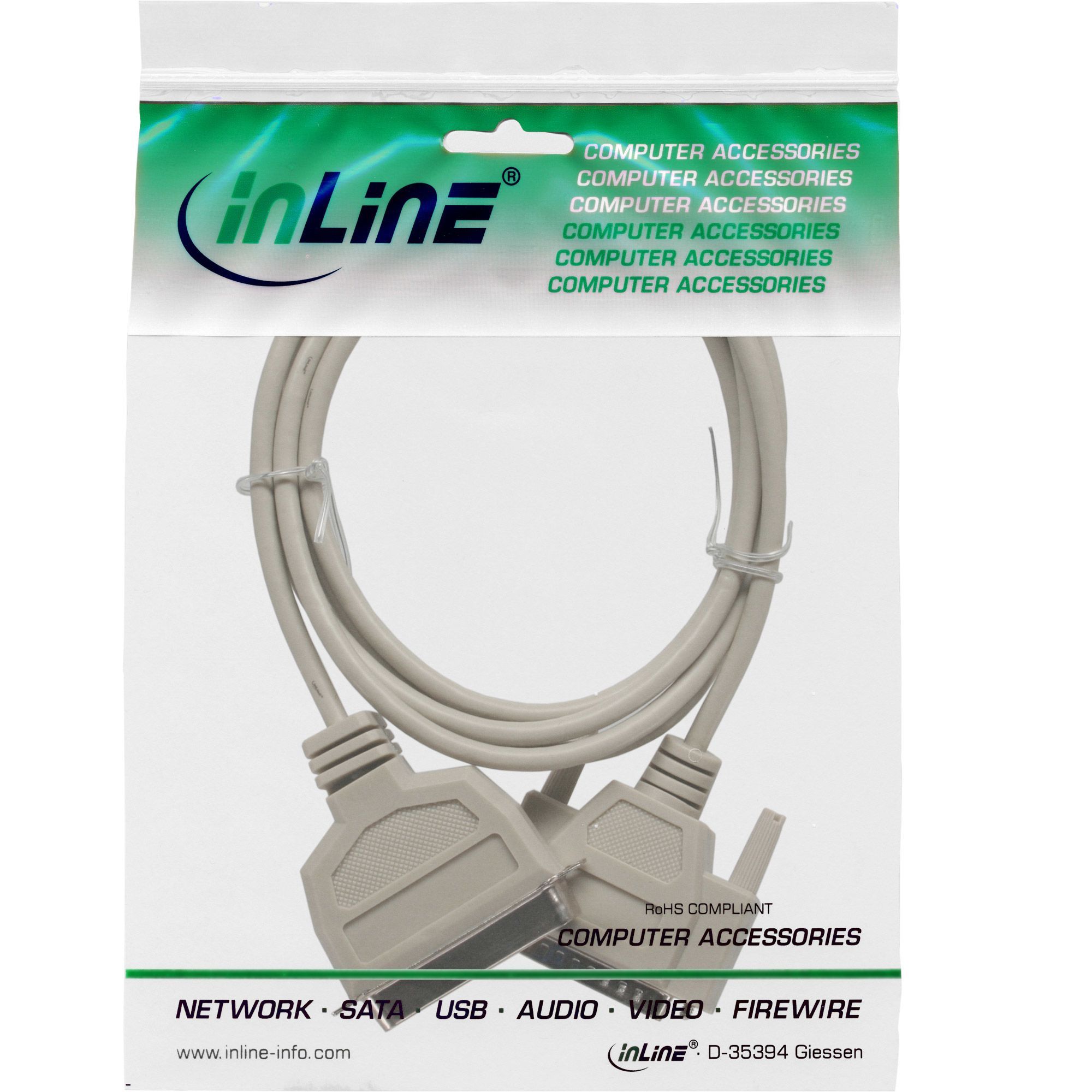 InLine® InLine® Druckerkabel, bi-direktional, vergossen, 2m, beige