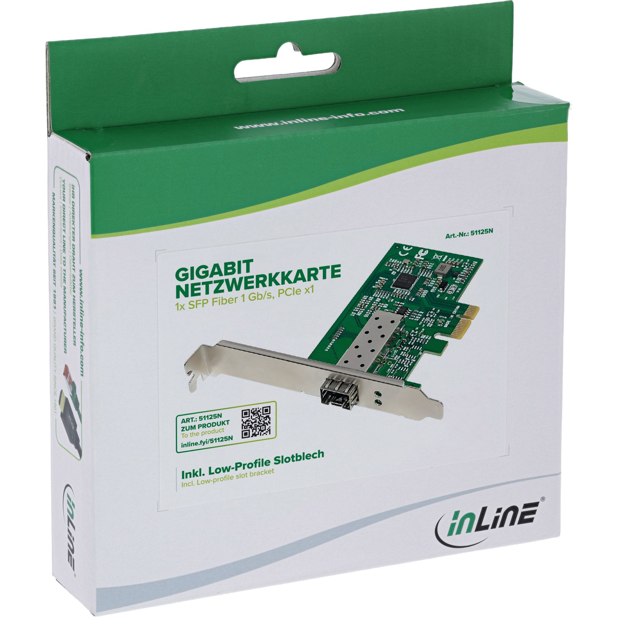InLine® InLine® Gigabit Netzwerkkarte, 1x SFP Fiber 1Gb/s, PCIe x1, inkl. LP Slotblech