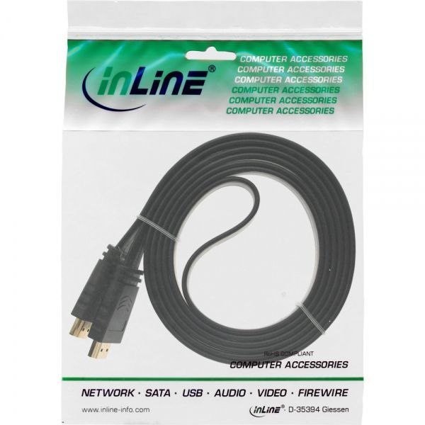 InLine® InLine® HDMI Flachkabel, HDMI-High Speed mit Ethernet, verg. Kontakte, schwarz,