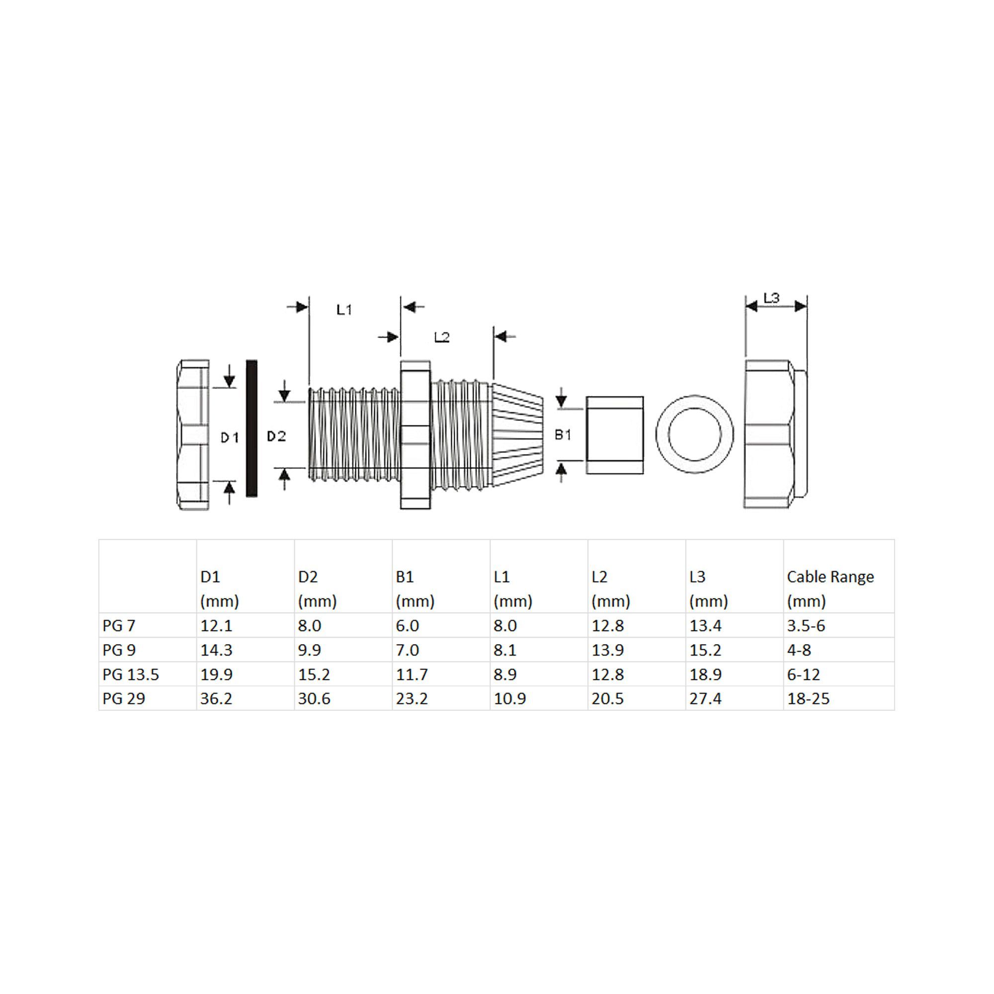 InLine® InLine® Kabeldurchführung PG 9 Nylon IP68 4-8mm, grau, 10 Stück, grau
