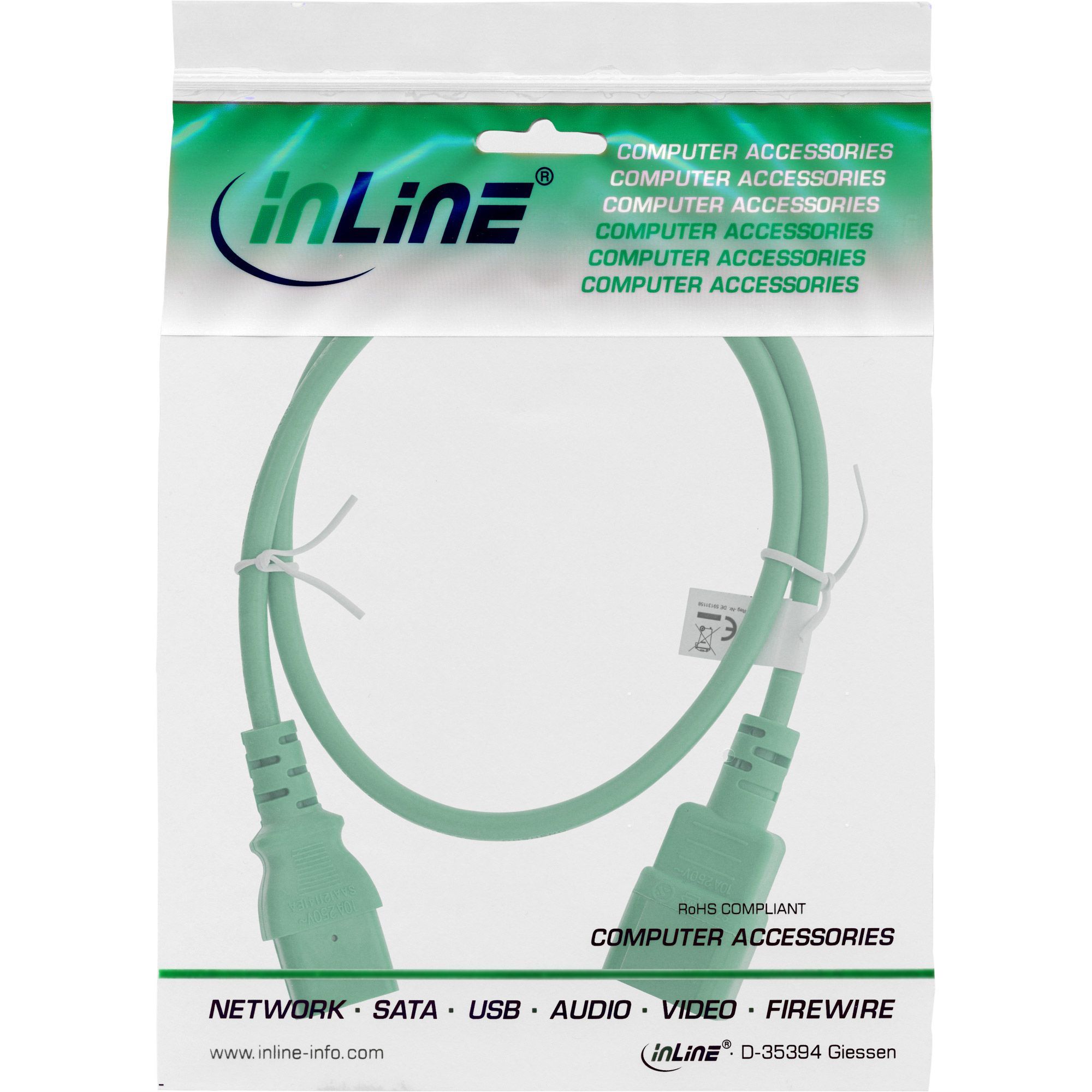 InLine® InLine® Kaltgeräteverlängerung, C13 auf C14, grün, 1m