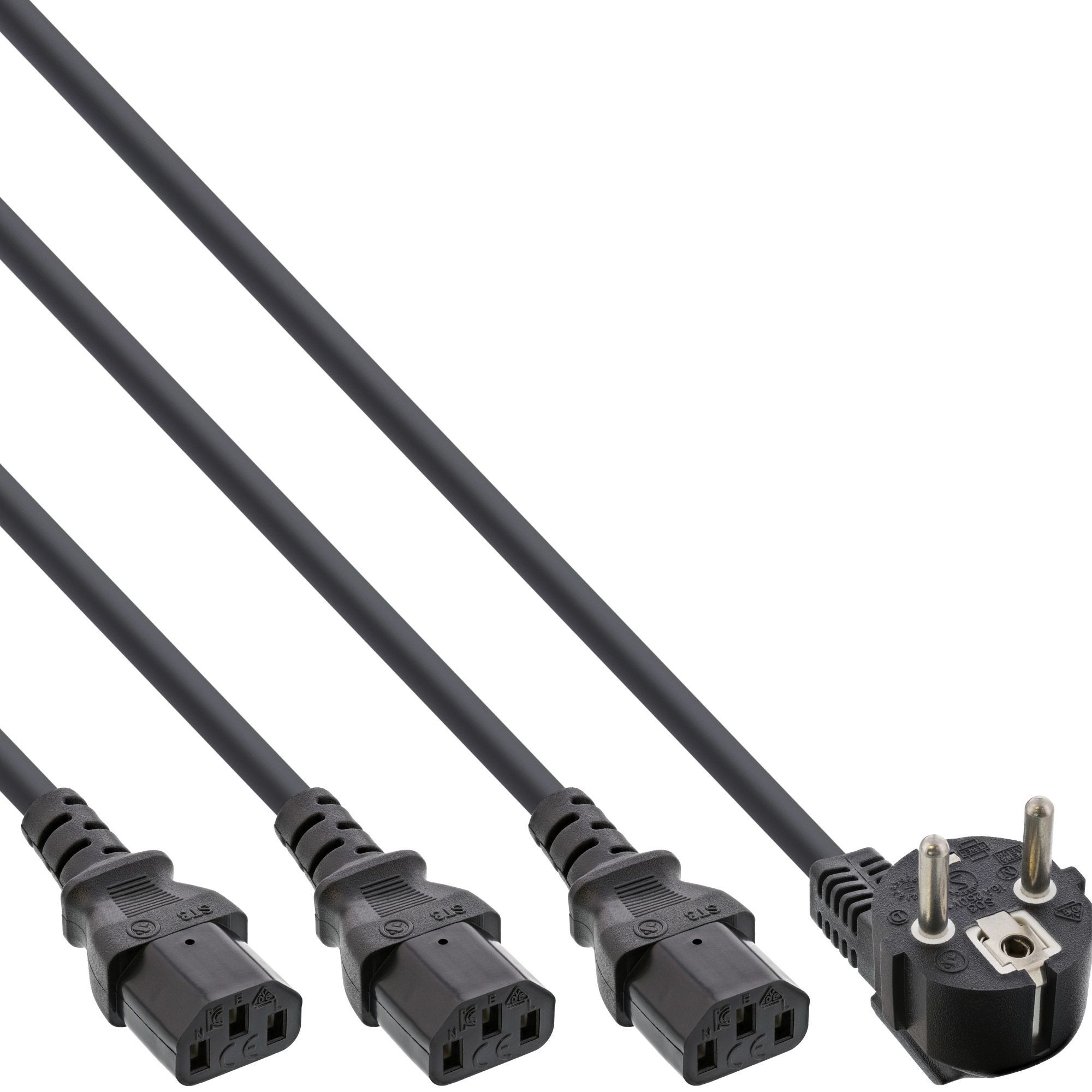 InLine® InLine® Netz-Y-Kabel, 1x Schutzkontaktstecker zu 3x Kaltgerätestecker, 3m, schwa