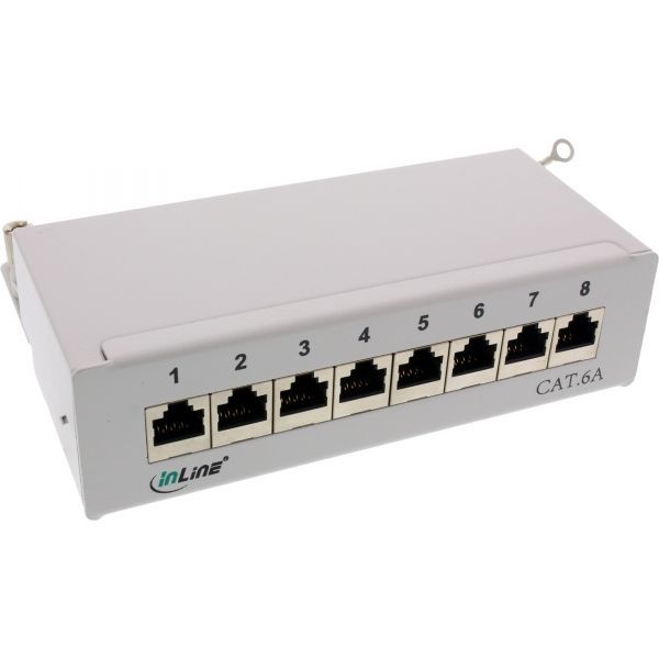 InLine® InLine® Patchfeld Cat.6A, 8-fach, Tisch/Wand-Montage, lichtgrau, RAL7035, grau