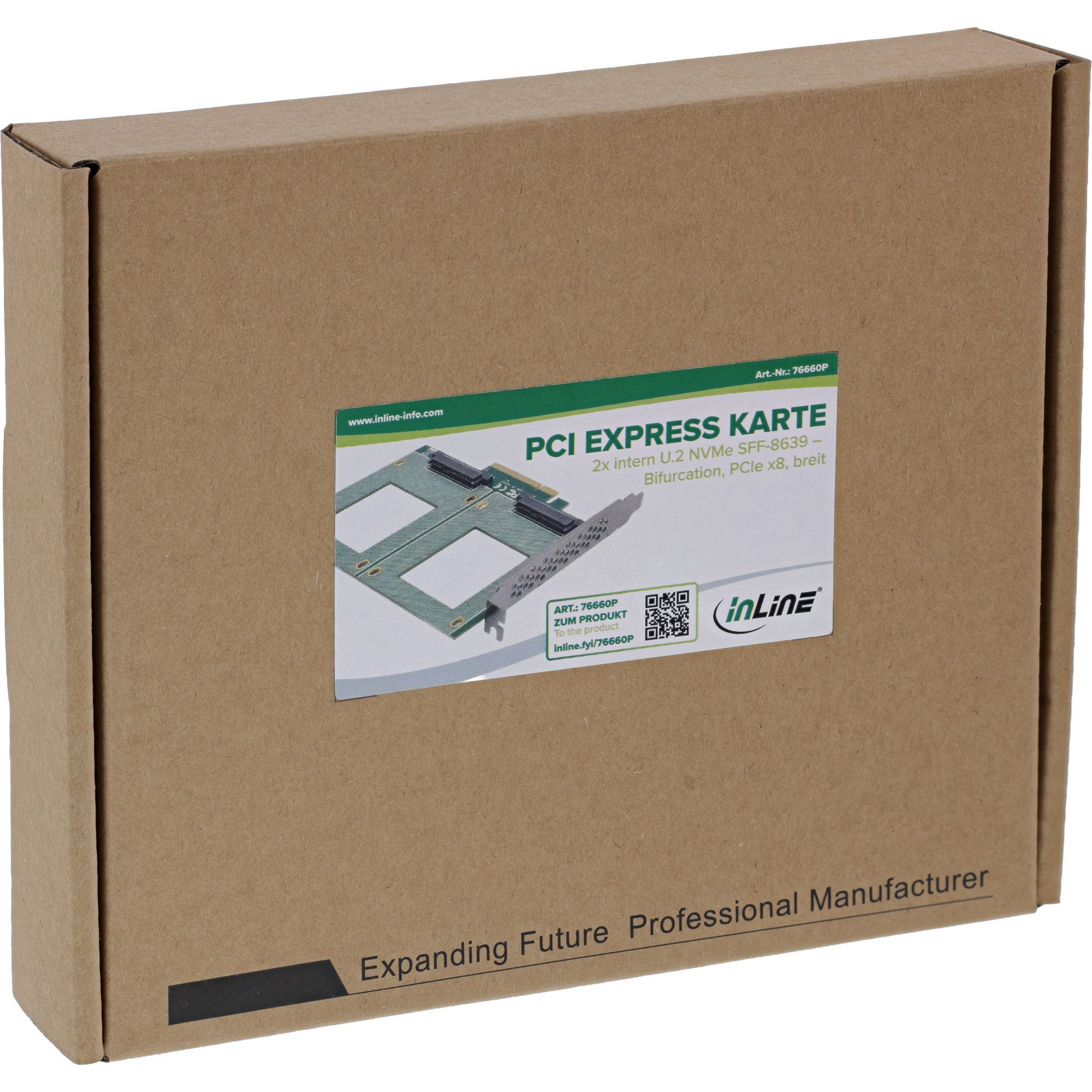 InLine® InLine® PCIe Karte zu 2x intern U.2 NVMe SFF-8639 – Bifurcation, PCIe x8, breit