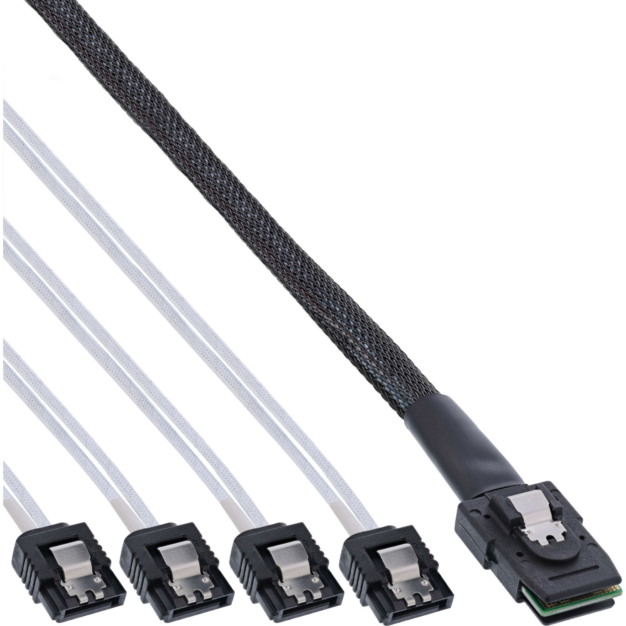 InLine® InLine® SAS Anschlusskabel, Mini-SAS SFF-8087 an 4x SATA, 1:1, OCR, 0,75m, rot