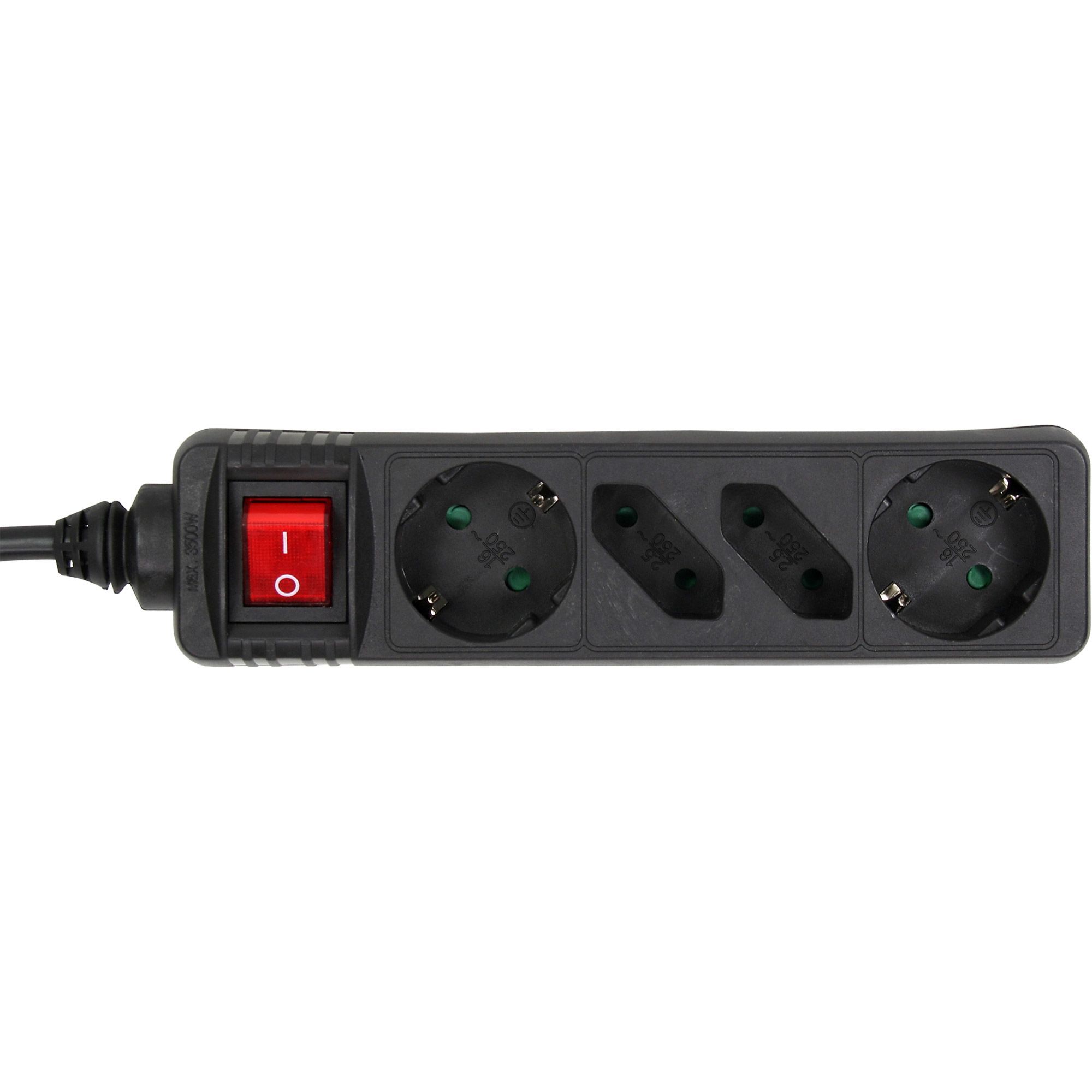 InLine® InLine® Steckdosenleiste, 4-fach, 2x Schutzkontakt + 2x Euro, mit Schalter, 5m,