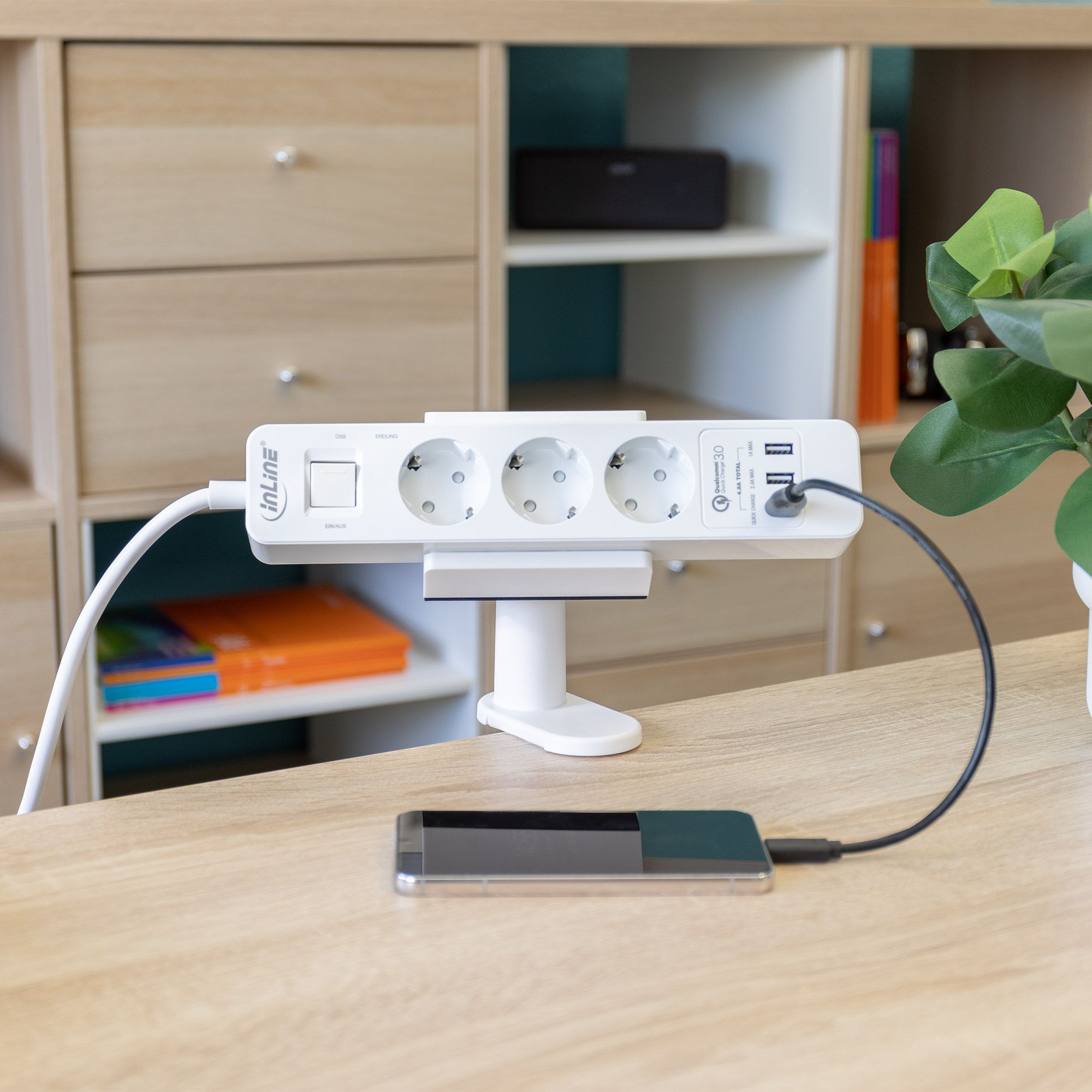 InLine® InLine® Tischklemme für Steckdosenleiste, drehbar, Federklemme, weiß