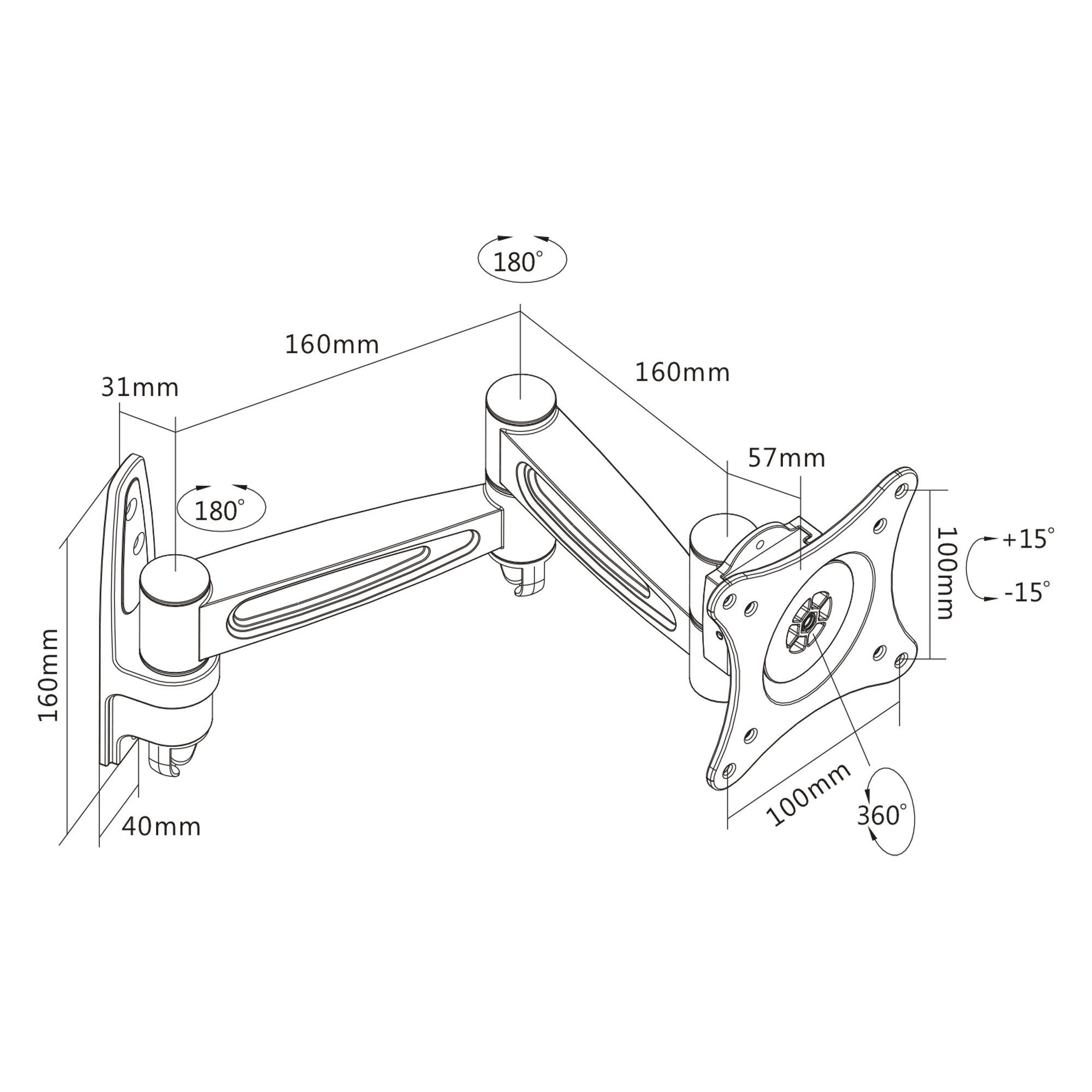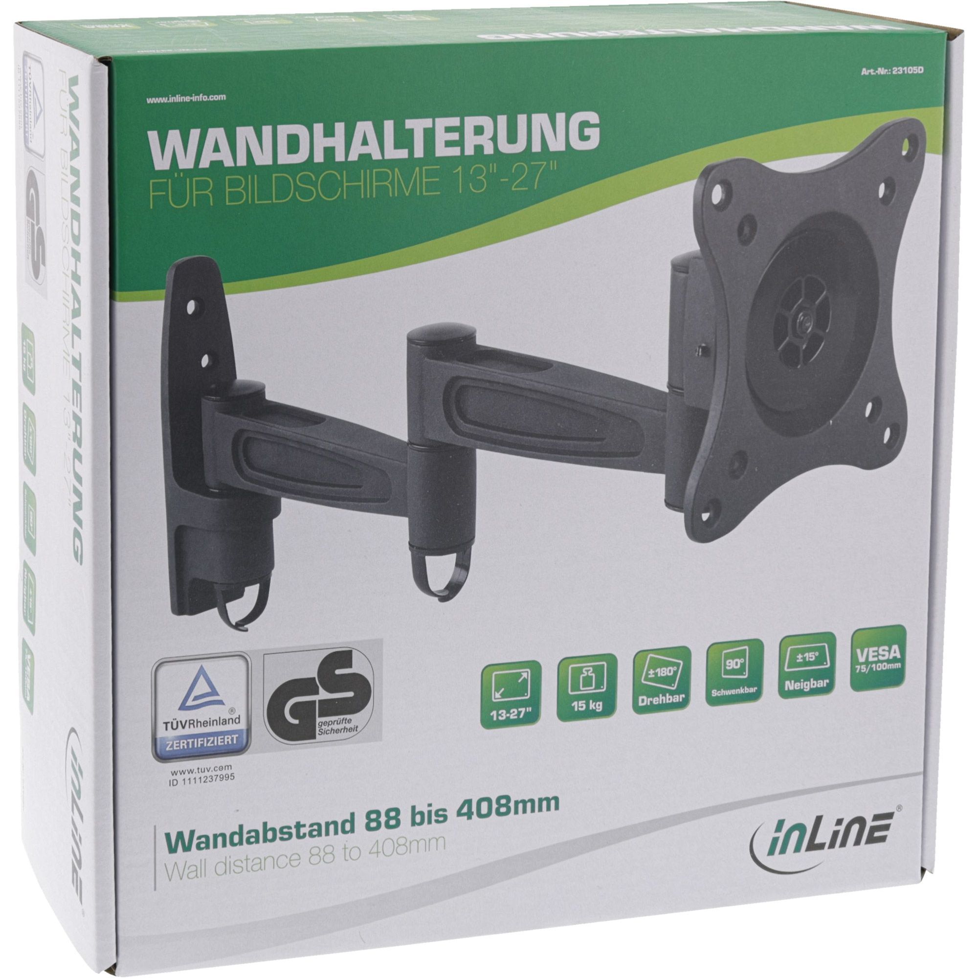 InLine® InLine® Wandhalterung für TFT bis 68cm (27Zoll), max. 15kg, 2-teiliger Arm