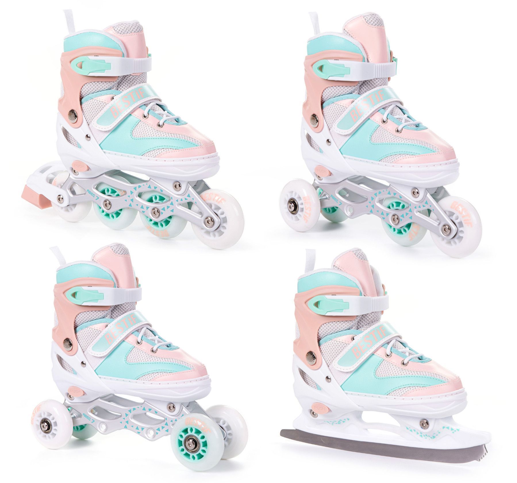 Inliner Damen Inline Skates 4in1 Rollschuhe Schlittschuhe verstellbar Größe 34-37