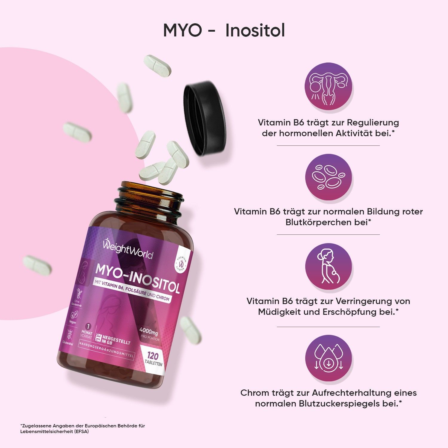 Inositol 4000mg Tabletten - Mit Chrom, Vitamin B6 & B9-120 vegane Tabletten - 2 Pack