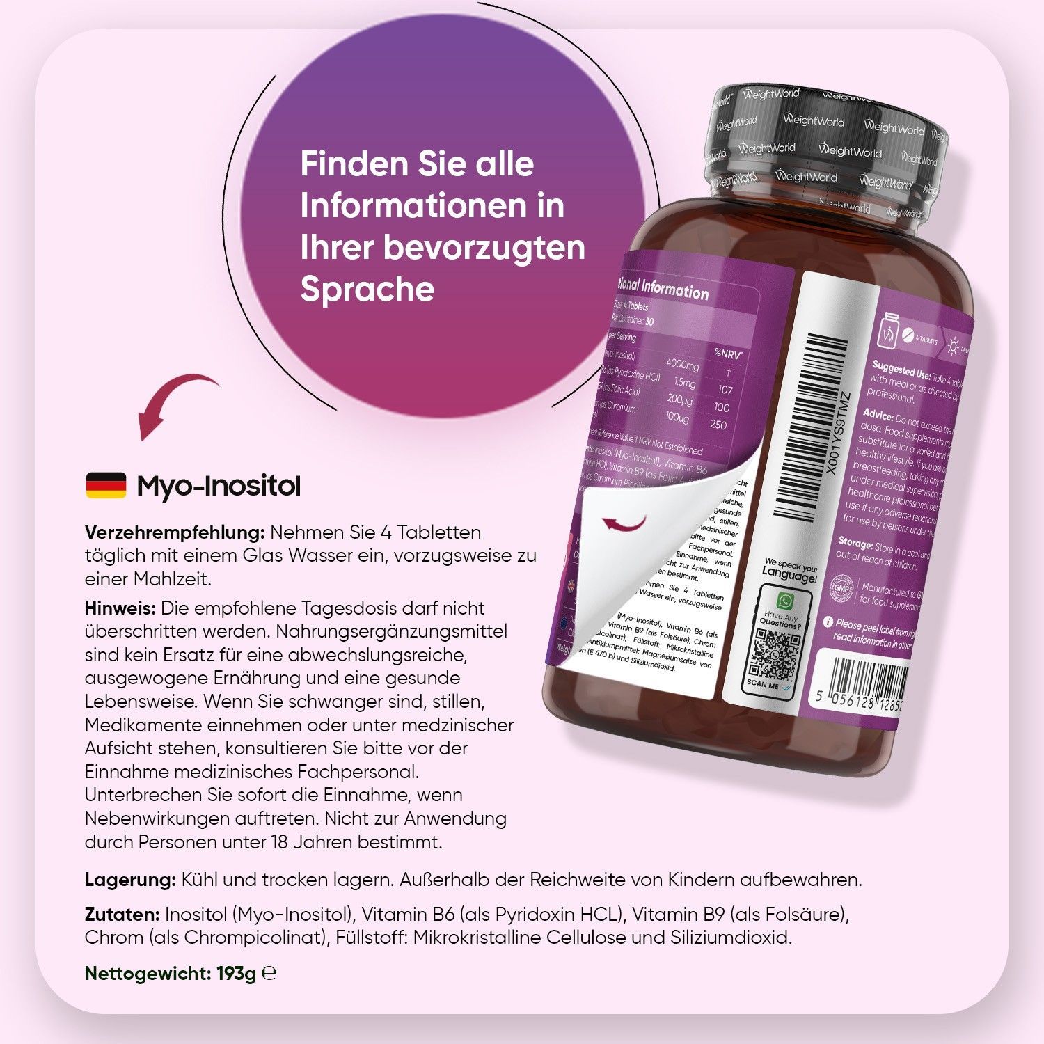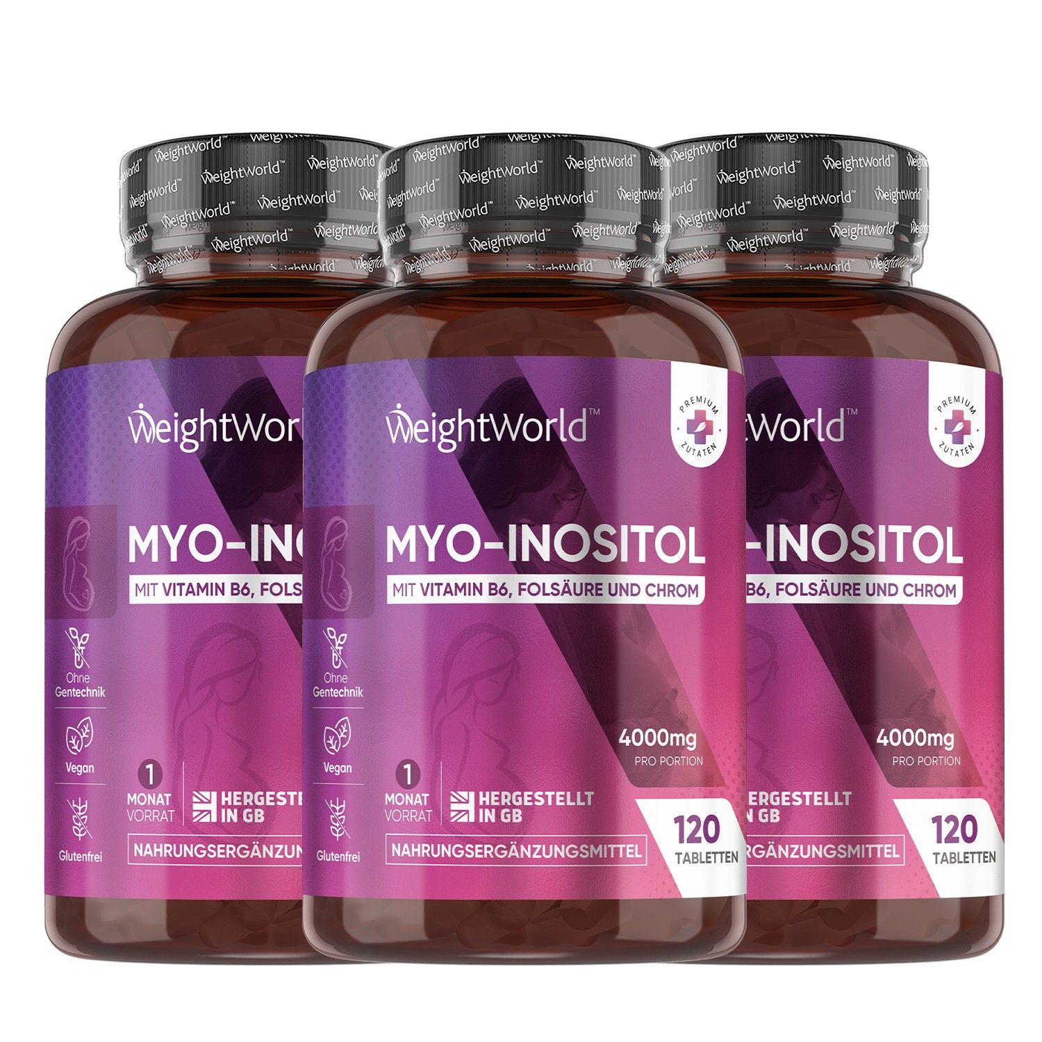 Inositol 4000mg Tabletten - Mit Chrom, Vitamin B6 & B9-120 vegane Tabletten - 3 Pack