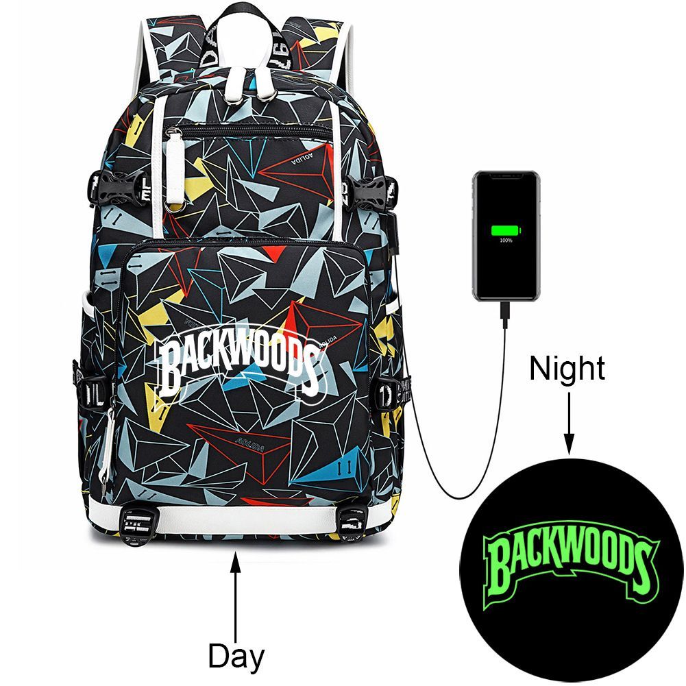 Ins Backwoods USB Rucksack Damen Schüler Leuchtend Reise Schultasche 30x15x47
