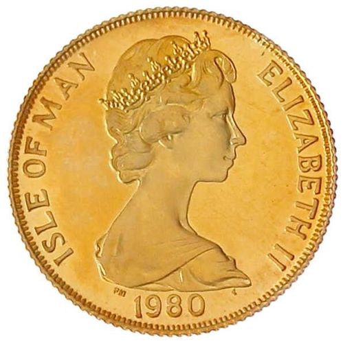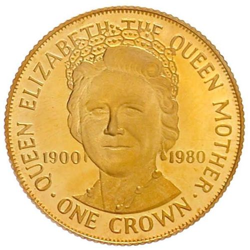 Isle of Man 1 Crown 1980 Goldmünze PP Proof 5,25 g. zum 80. Geburtstag von Queen Mom. Mother, Schön 56, K.M. 63 c