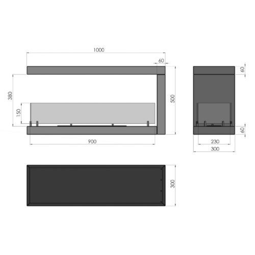 INSIDE U1000 Panorama Ethanolkamin Einbaukassette 50 cm Brenner