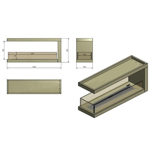 INSIDE U1000 Panorama Ethanolkamin Einbaukassette 80 cm Brenner
