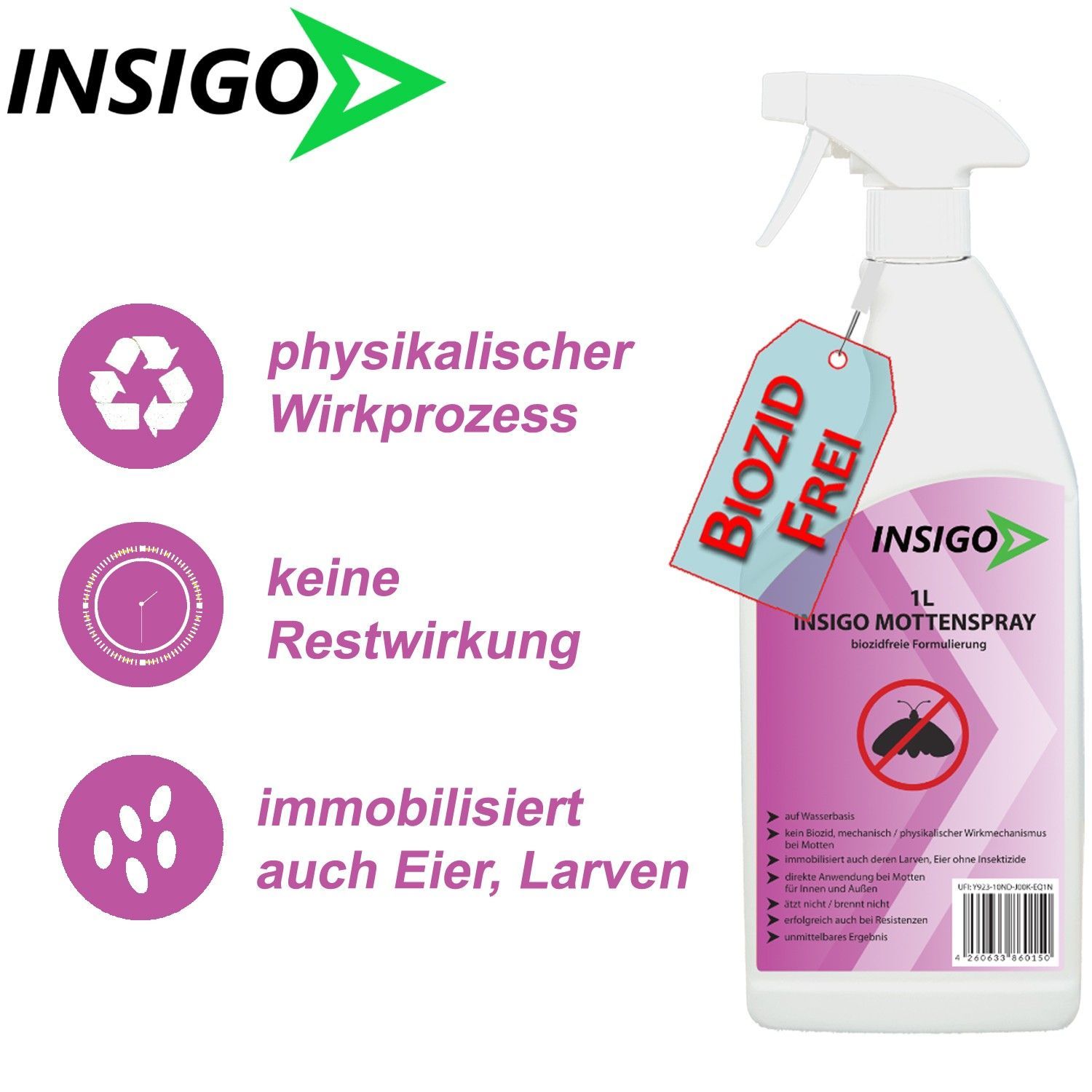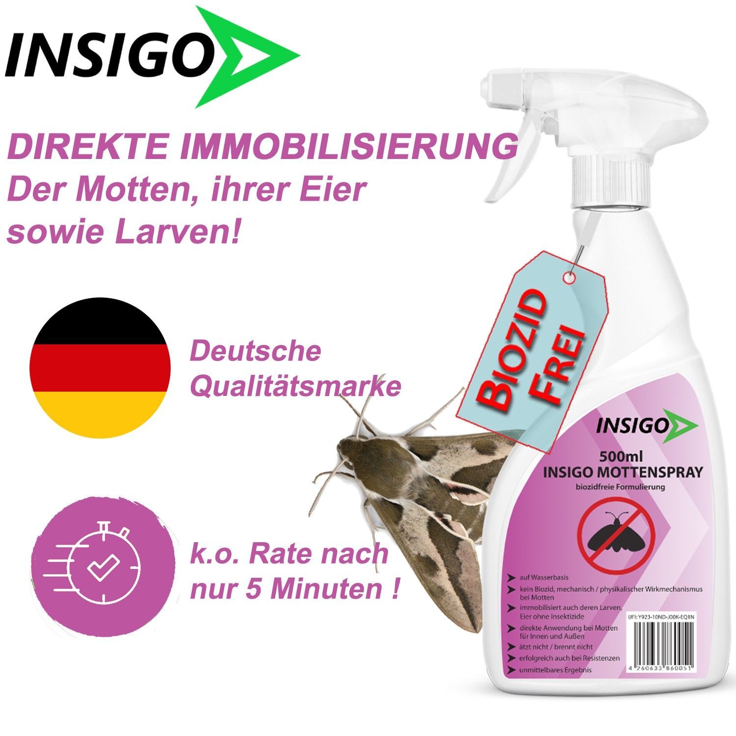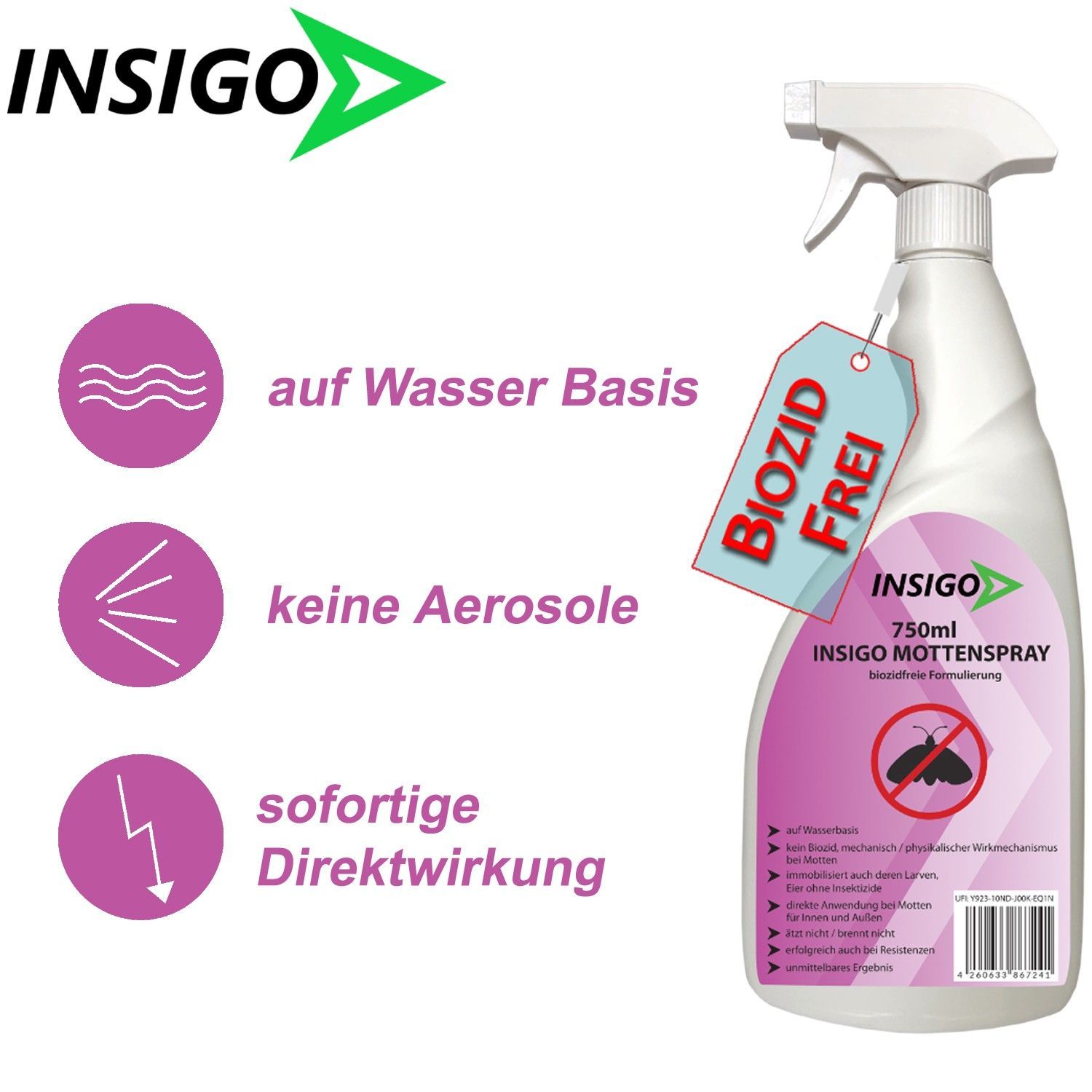 INSIGO 500ml Anti Mottenspray Mottenmittel Kleidermotten Mottenschutz Abwehr