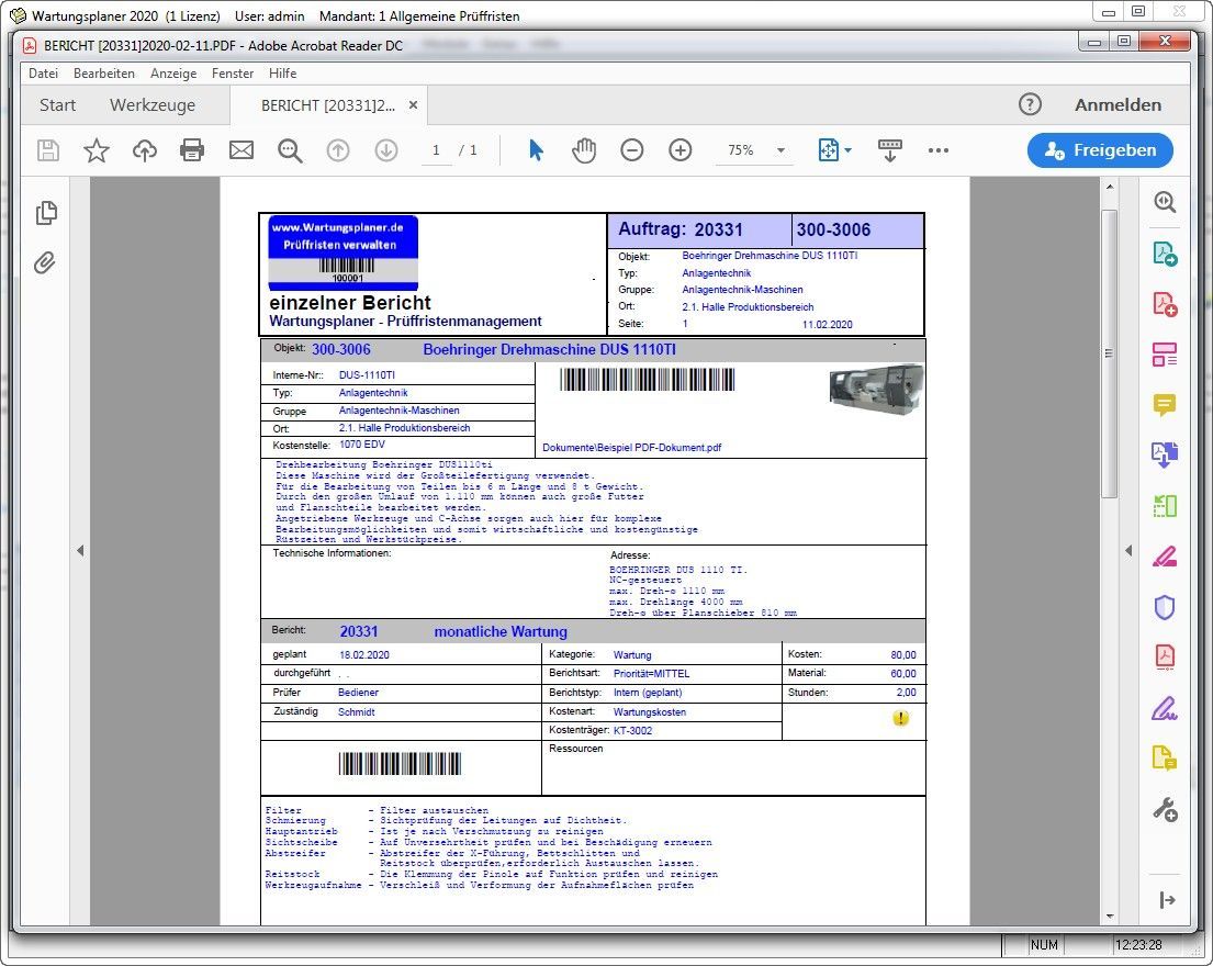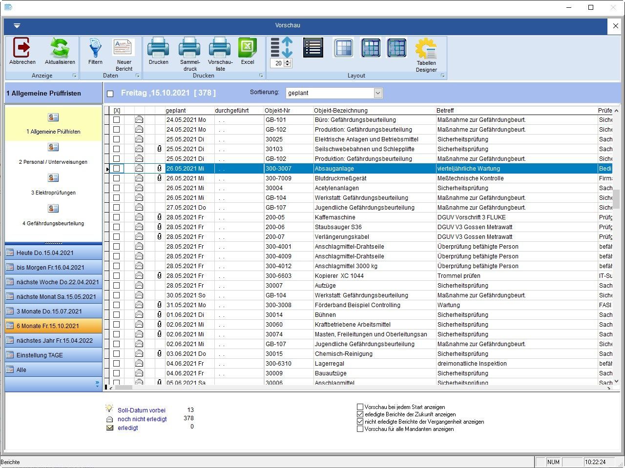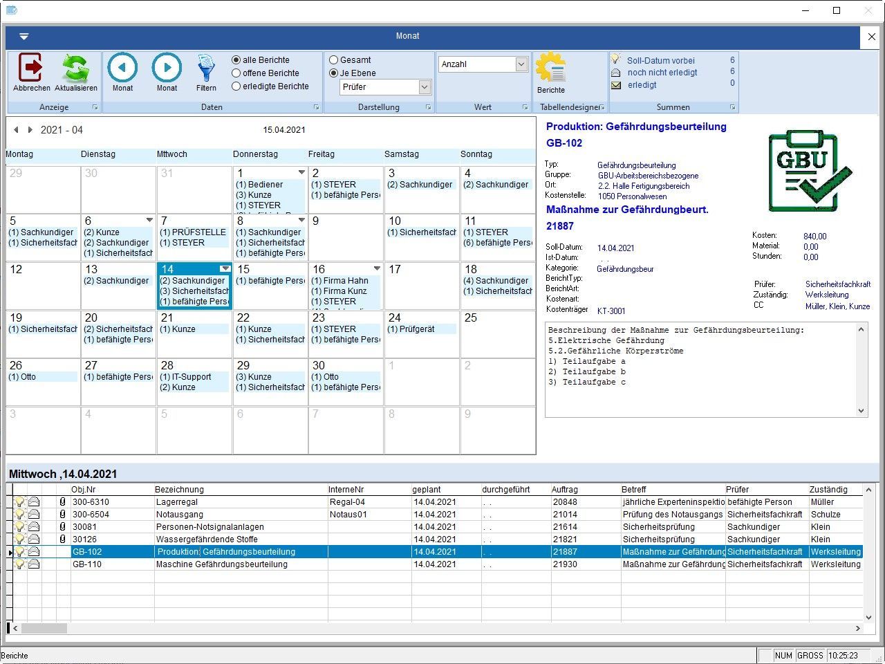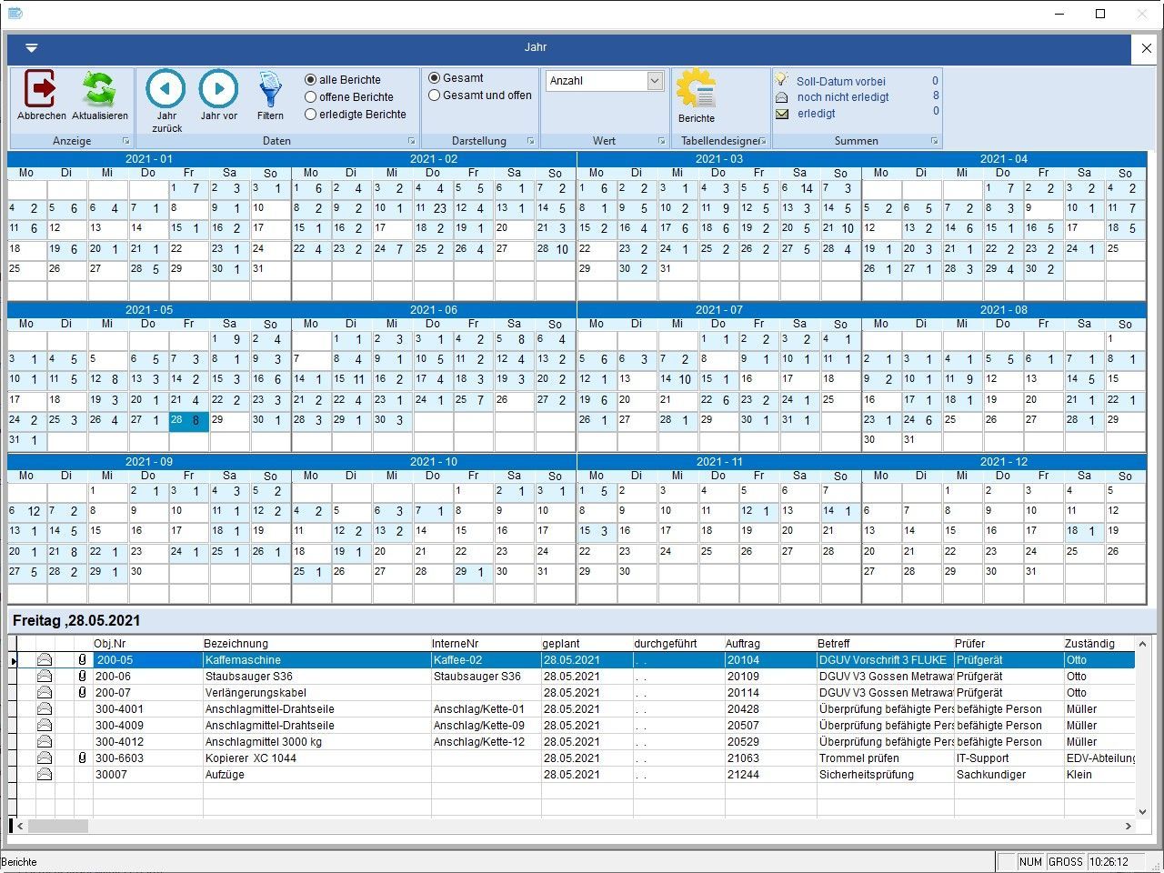 Im Mittelpunkt stehen die Wartungstermine der Maschinen oder Anlagen