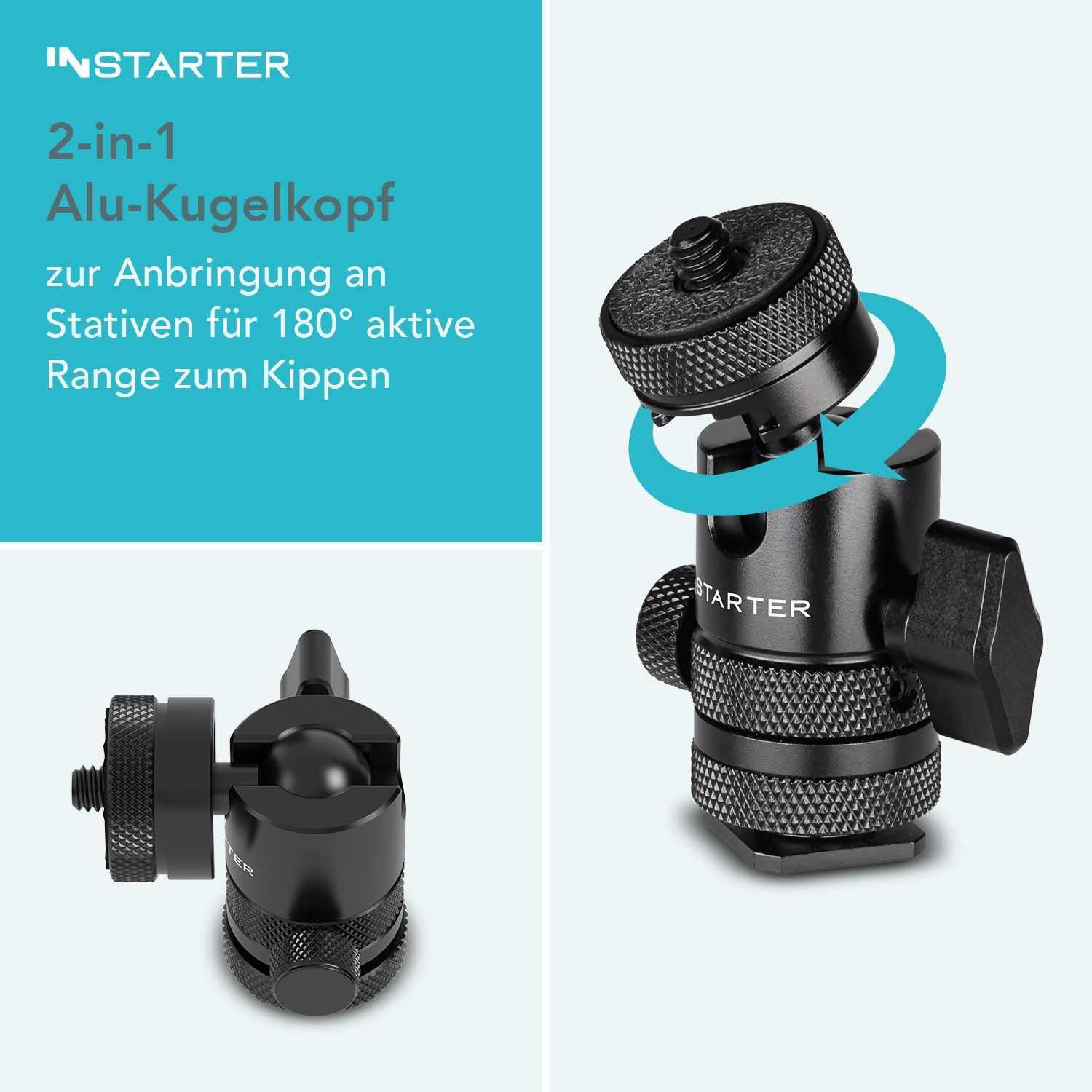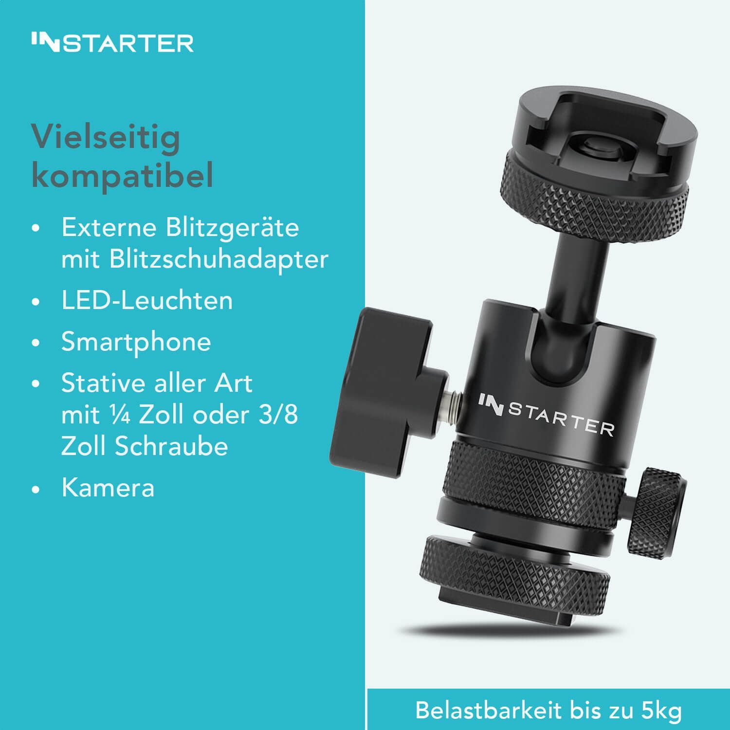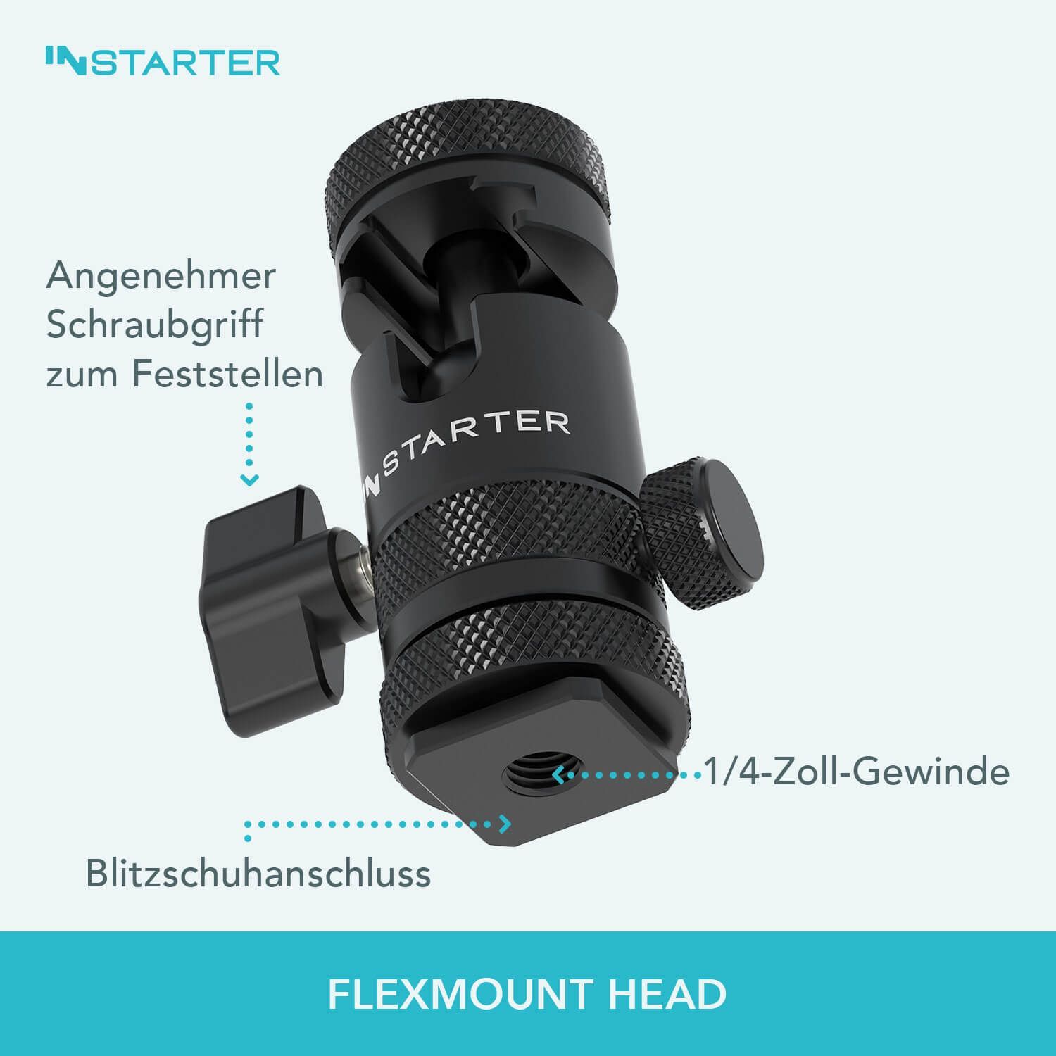 Instarter FlexMount Head Plus Kugelkopf 2-in-1 2x Blitzschuh Stativkopf Kamera