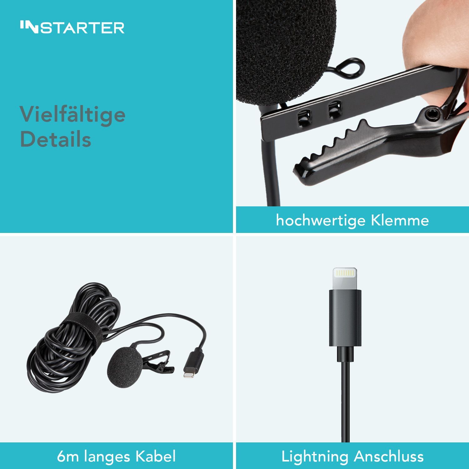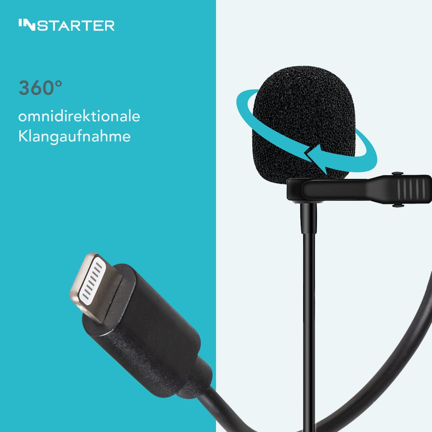 Instarter Lavalier Loop Clip Ansteck Mikro 360° Lightning 6m Windschutz Tasche