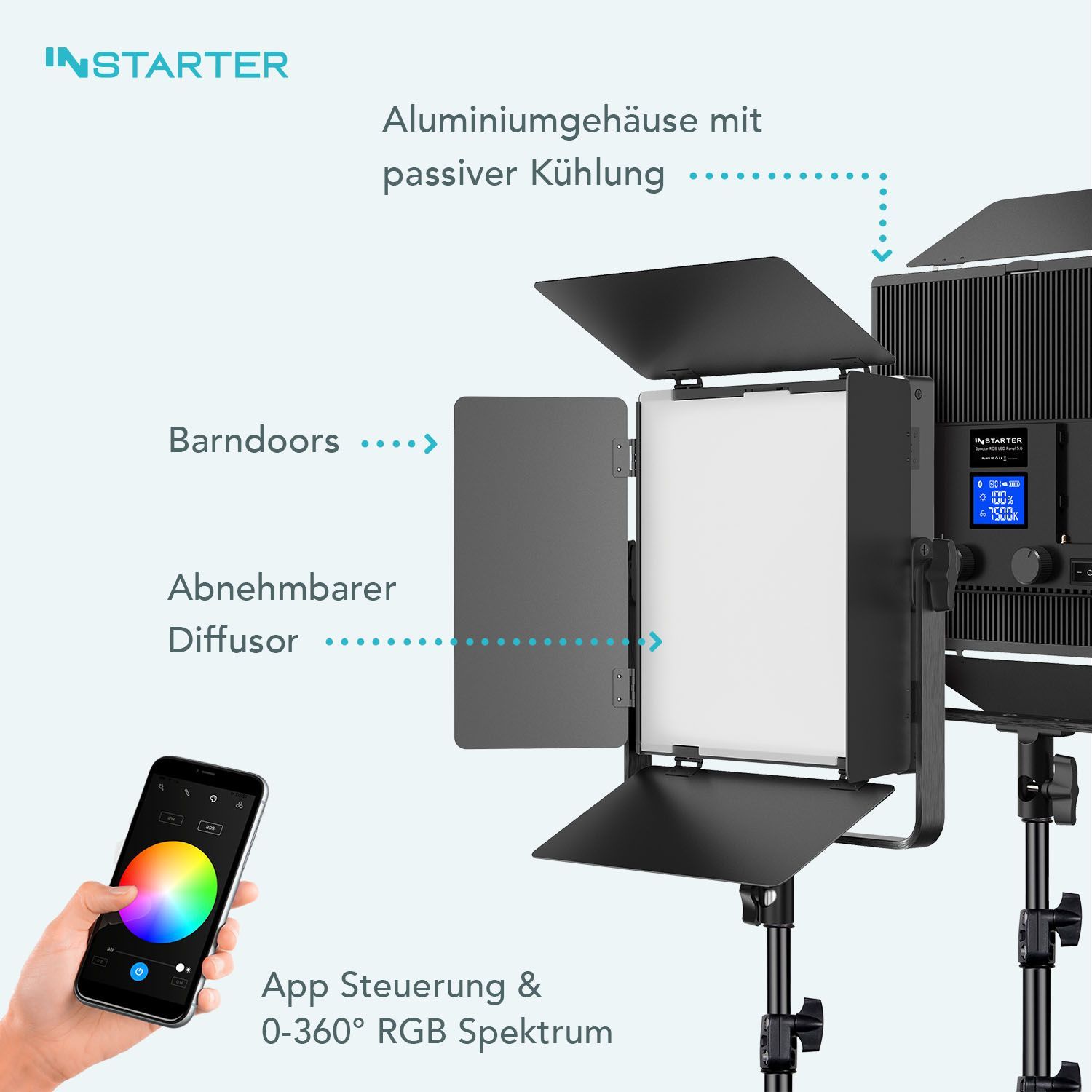 Instarter LED Videoleuchte 60W RGB Videolicht Studioleuchte Kamera Zubehör