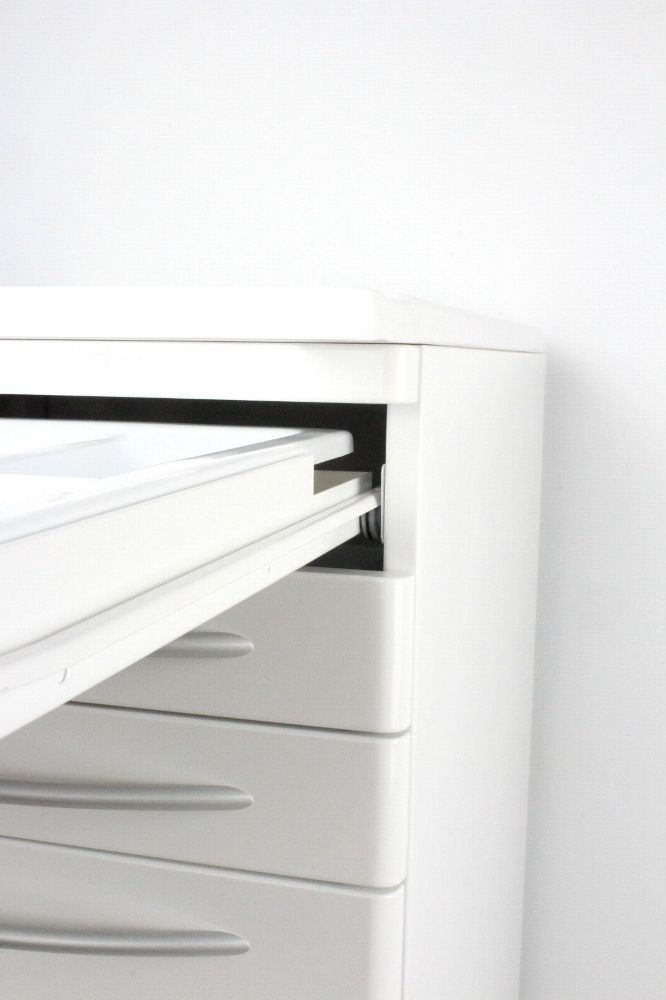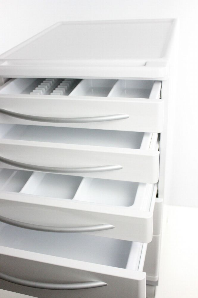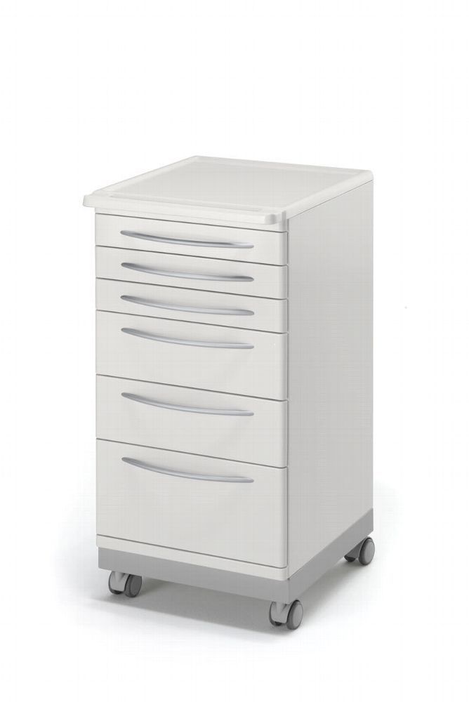 Rollwagen Instrumentenschrank mit 6 Schubladen. Farbe Euroweiß. Andere RAL- Farben auf Bestellung. ______________________________________________________________________ Kompakter und eleganter Rollwagen. Die geringe Breite von nur 50 cm macht diesen Wagen praktisch und leicht. Der Wagen ist aus elektroverzinktem und pulverbeschichtetem Stahlblech hergestellt und dadurch besonderst robust und langlebig.