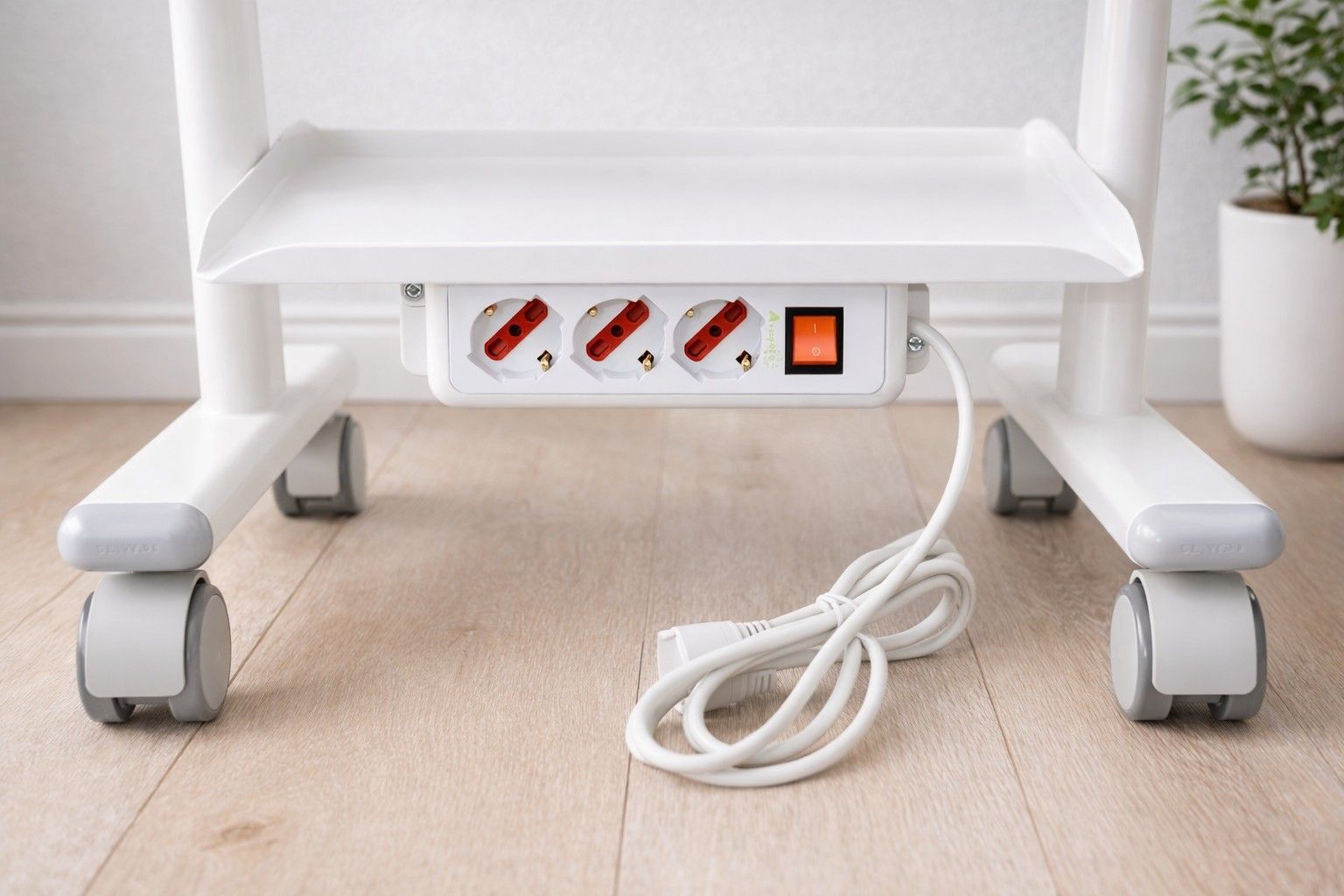 Hochwertiger Instrumenten- und Gerätewagen für Zahnarztpraxis, Klinik oder Labor. Der 3-stöckige Rollwagen überzeugt durch stabile Ablagen, leichtgängige Rollen und eine integrierte Steckdosenleiste mit Netzschalter – ideal für den sicheren Betrieb elektrischer Geräte direkt am Arbeitsplatz. Pflegeleicht, hygienisch und praxisgerecht.