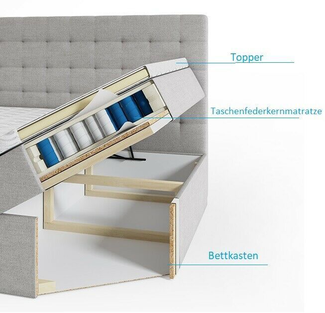 INTARO Boxspringbett Doppelbett Ehebett mit Bettkasten 140 160 180 200 Qualität