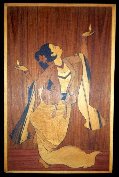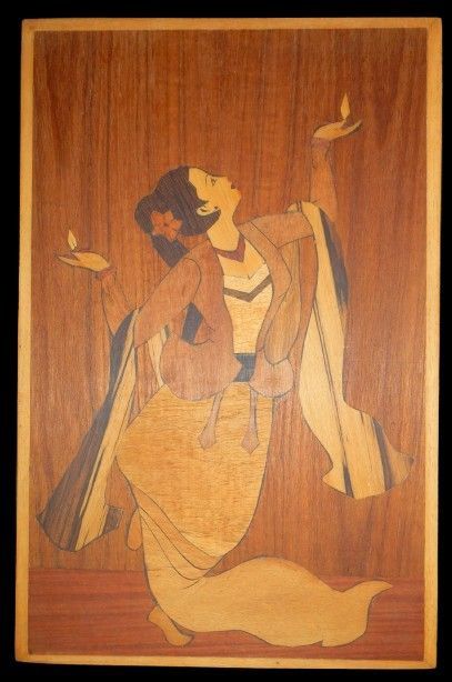 Intarsienbild "Öllampentanz" (Hsi Mee Khwet Dance) – 35,5 x 23 cm
