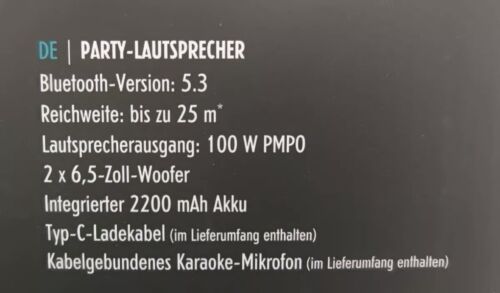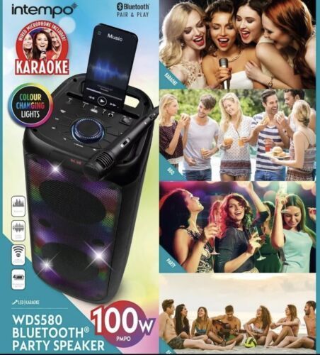 Intempo WDS580 Bluetooth Karaoke Lautsprecher LED Party Boom Box + Mikrofon Akku