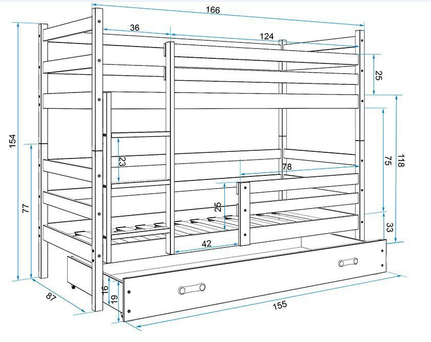 Interbeds Etagenbett Hochbett ERYK 160x80cm aus Kiefernholz+ Matratzen + Lattenroste