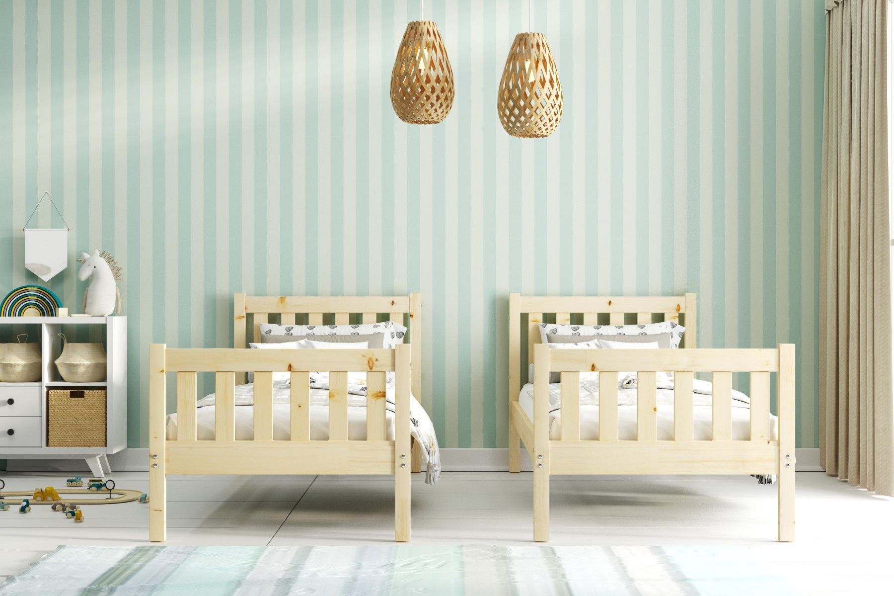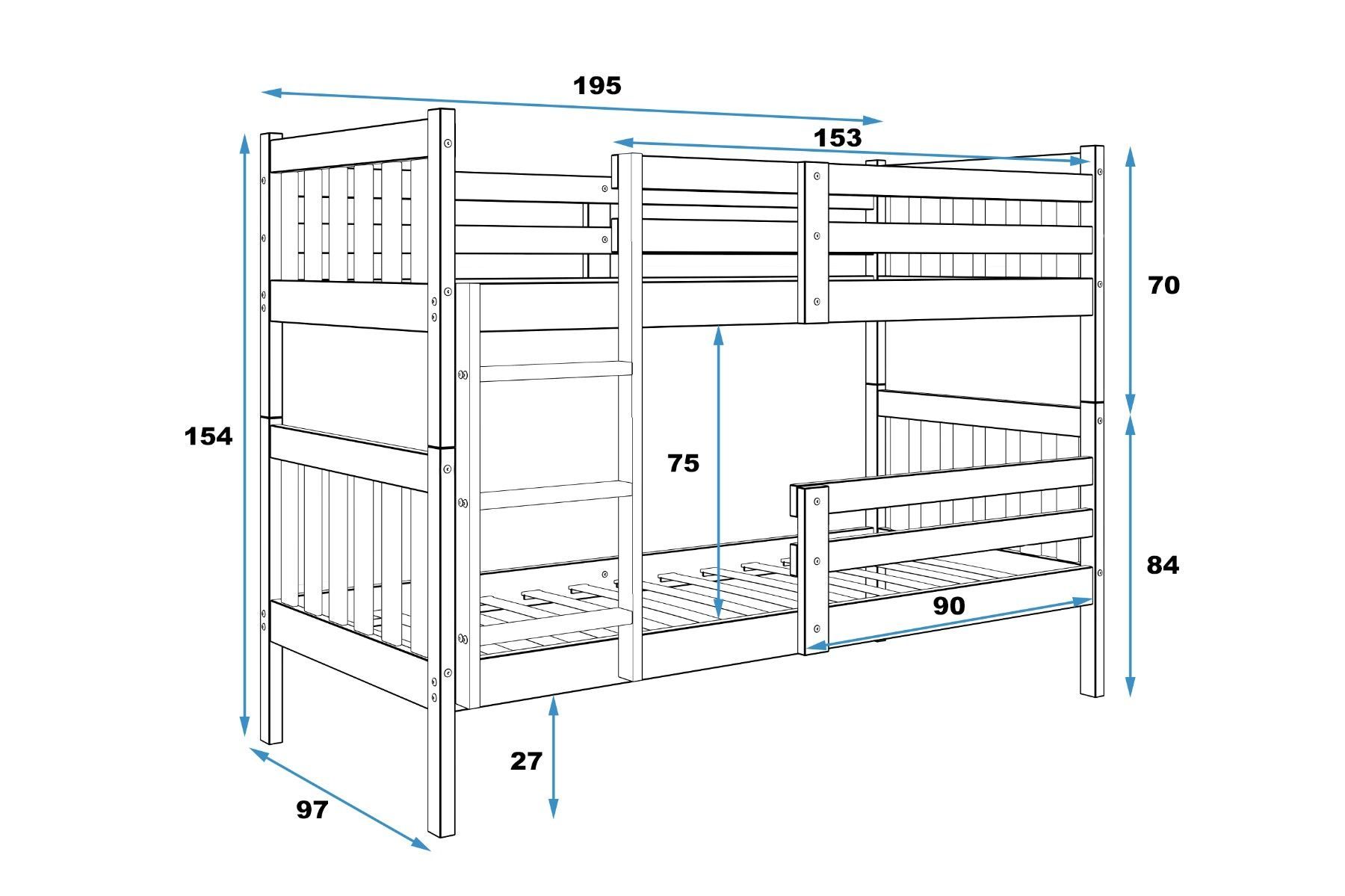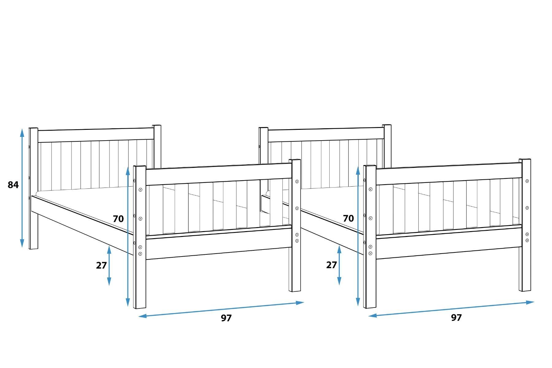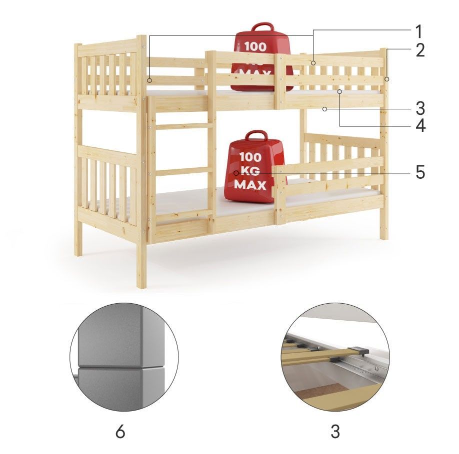 Interbeds Etagenbett Kacper aus Kiefernholz roh, 190 x 90 cm, mit Leiter und Lattenro