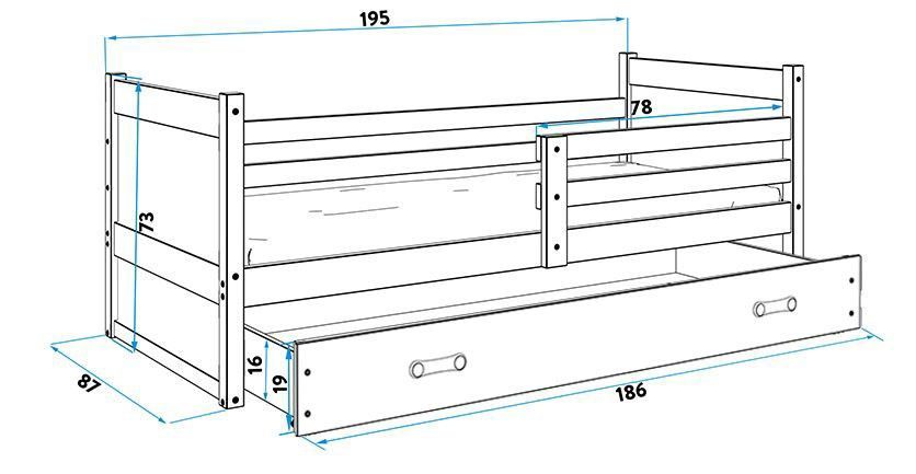 Interbeds Kinderbett Einzelbett RICO 190x80cm weiß mit Varianten+ Matratzen