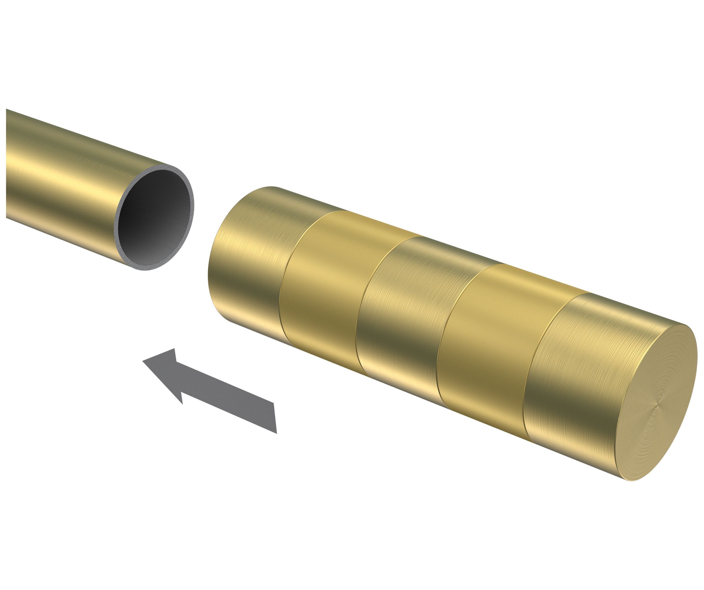 Endstücke Zylinder Bicolor Messing-Optik Satin für Gardinenstangen 20 mm Durchschitt - Sie kaufen 1 Packung Endstücke. Diese Endstücke dienen als dekorativer Abschluss für Gardinenstangen mit einem Durchmesser von 20 mm. Sie verleihen der Vorhangstange ein ansprechendes Erscheinungsbild und sorgen g... Mehr
