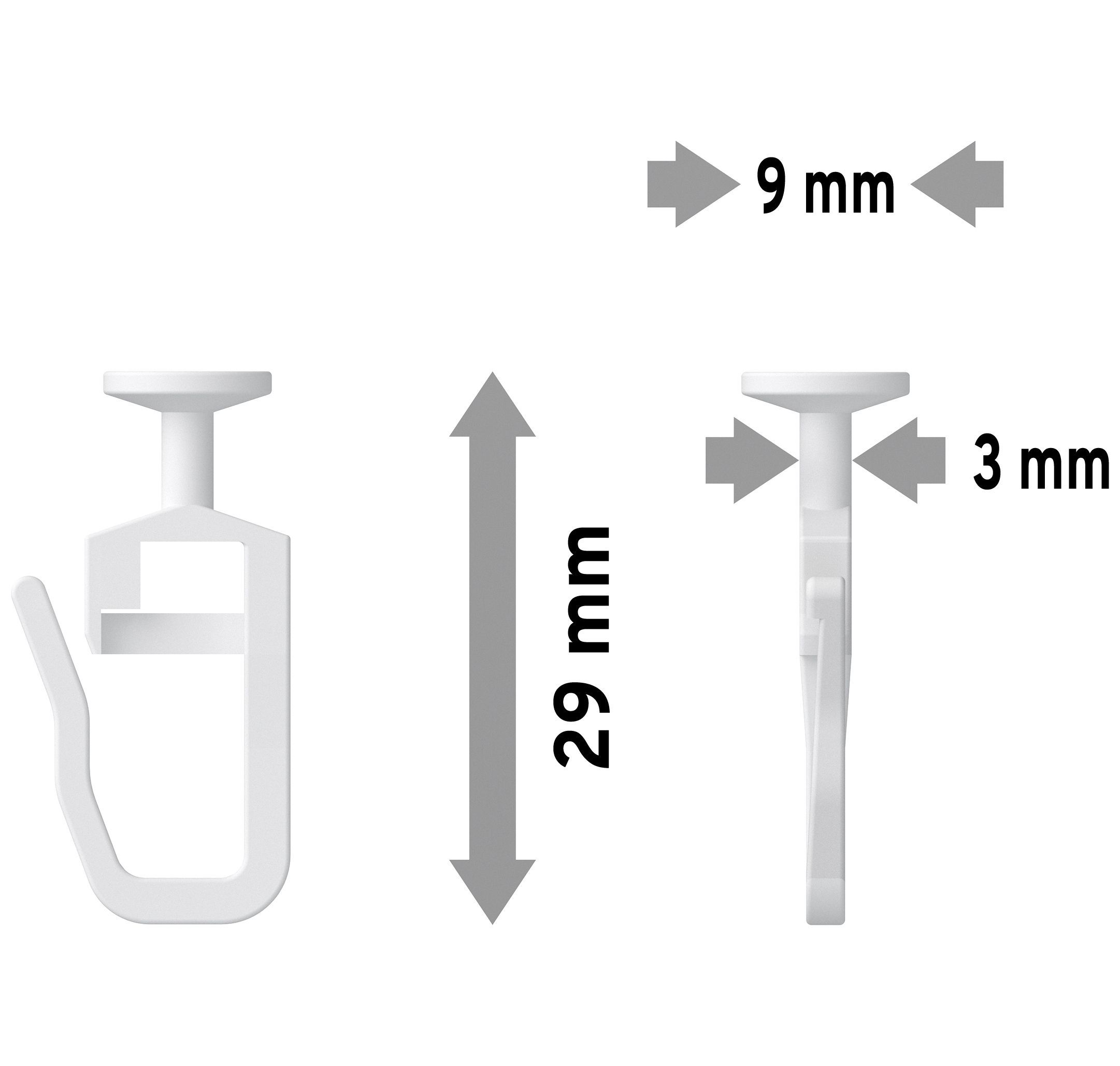 Rundkopf-Gleiter mit Haken für Innenlaufstangen Gardinenschienen Innenlaufprofile - Sie kaufen 1 Packung Faltengleiter Rundkopf-Gleiter mit Faltenlegehaken. Mit diesen Faltengleitern mit Rundkopf können Gardinen und Vorhänge an der Gardinenschiene bzw. einer Innenlaufstange befestigt werden. Sind di... Mehr