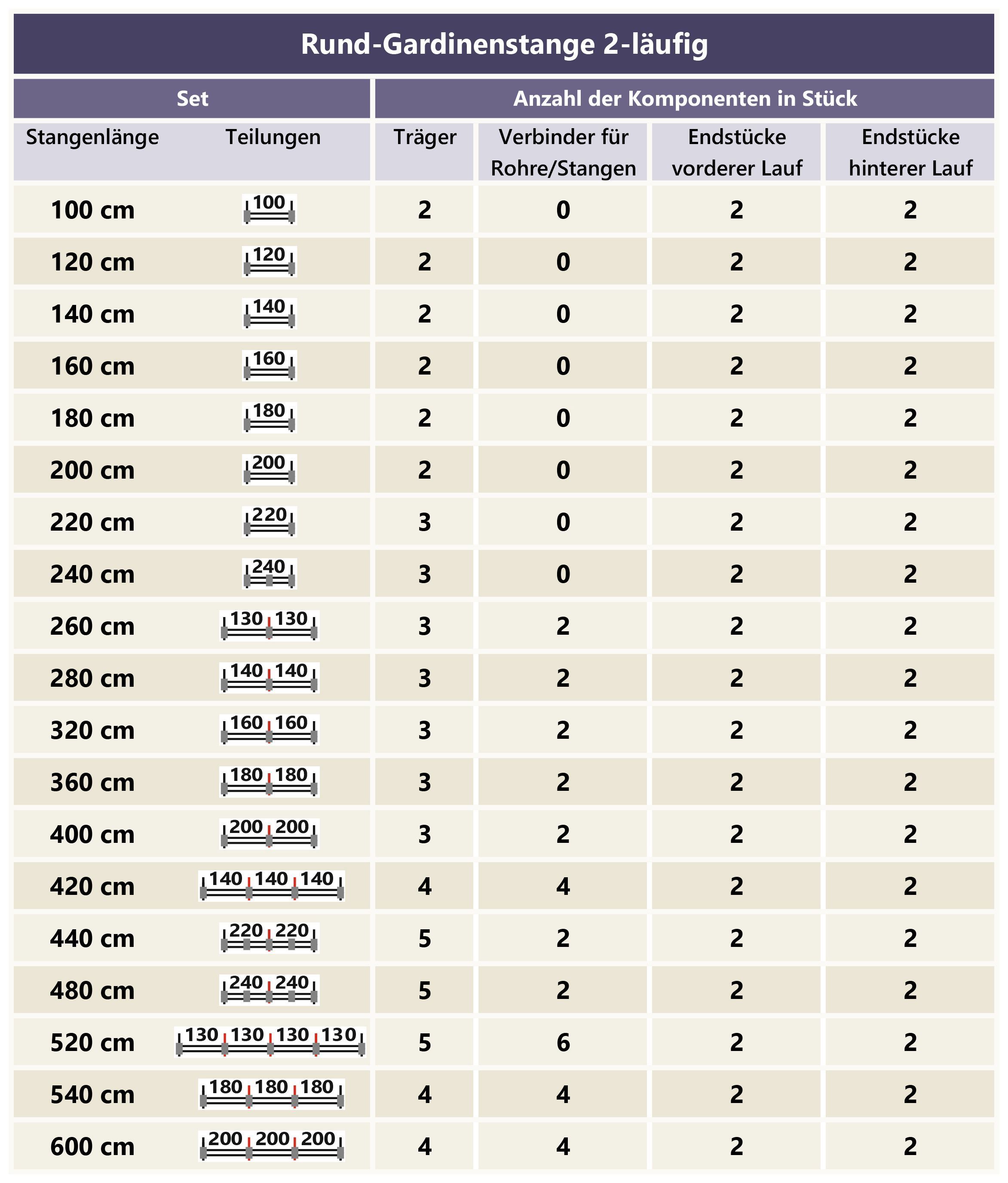 Gardinenstangen / Vorhangstangen Edelstahl-Optik 20 mm Ø ohne Ringe