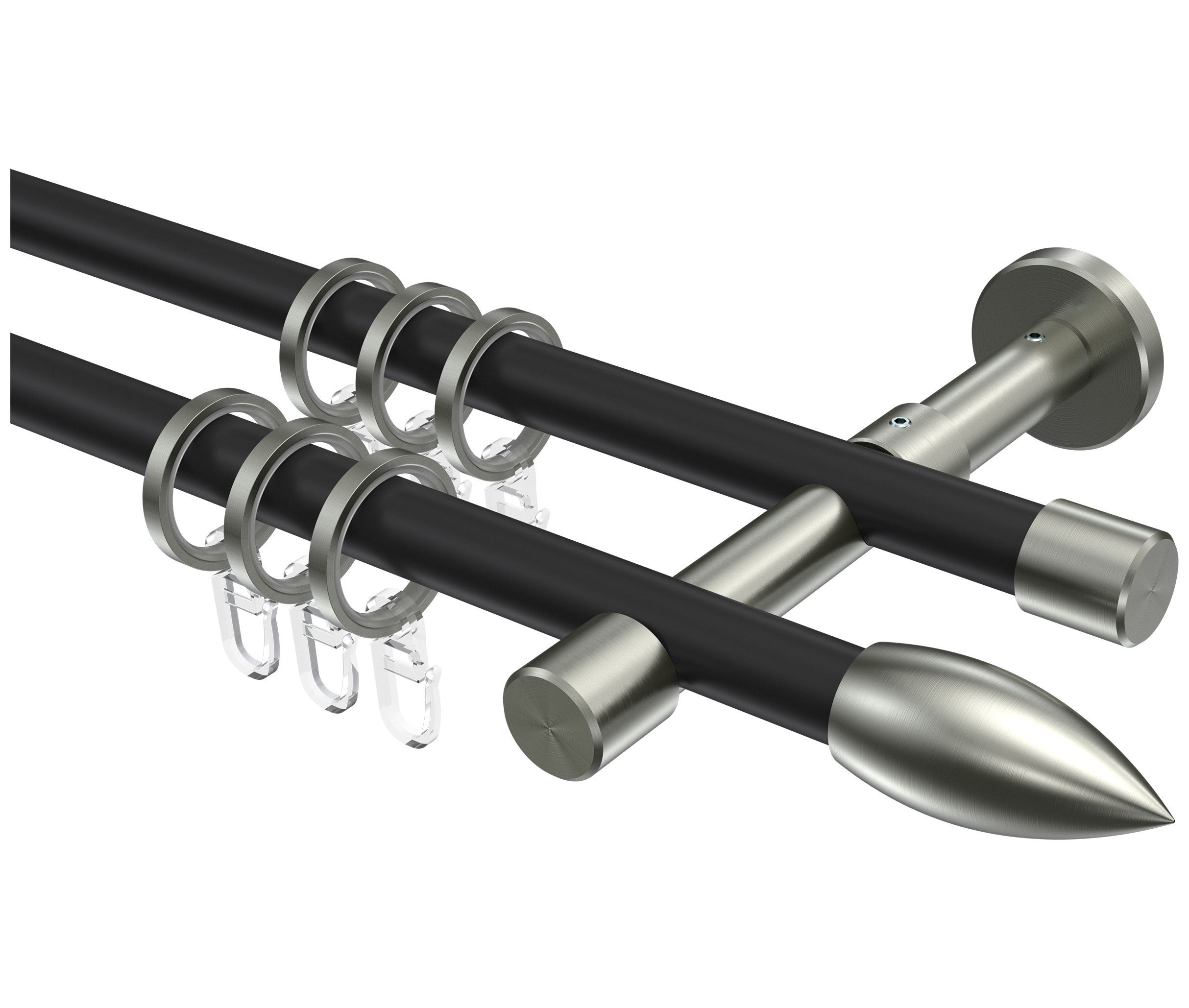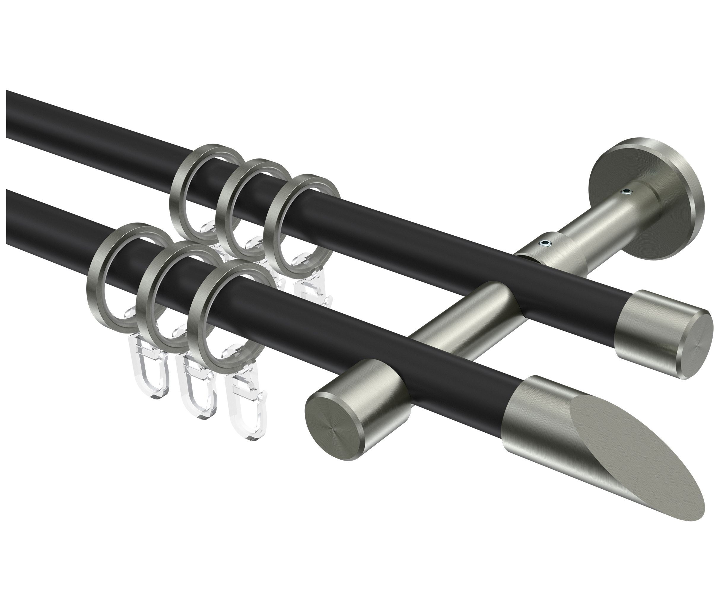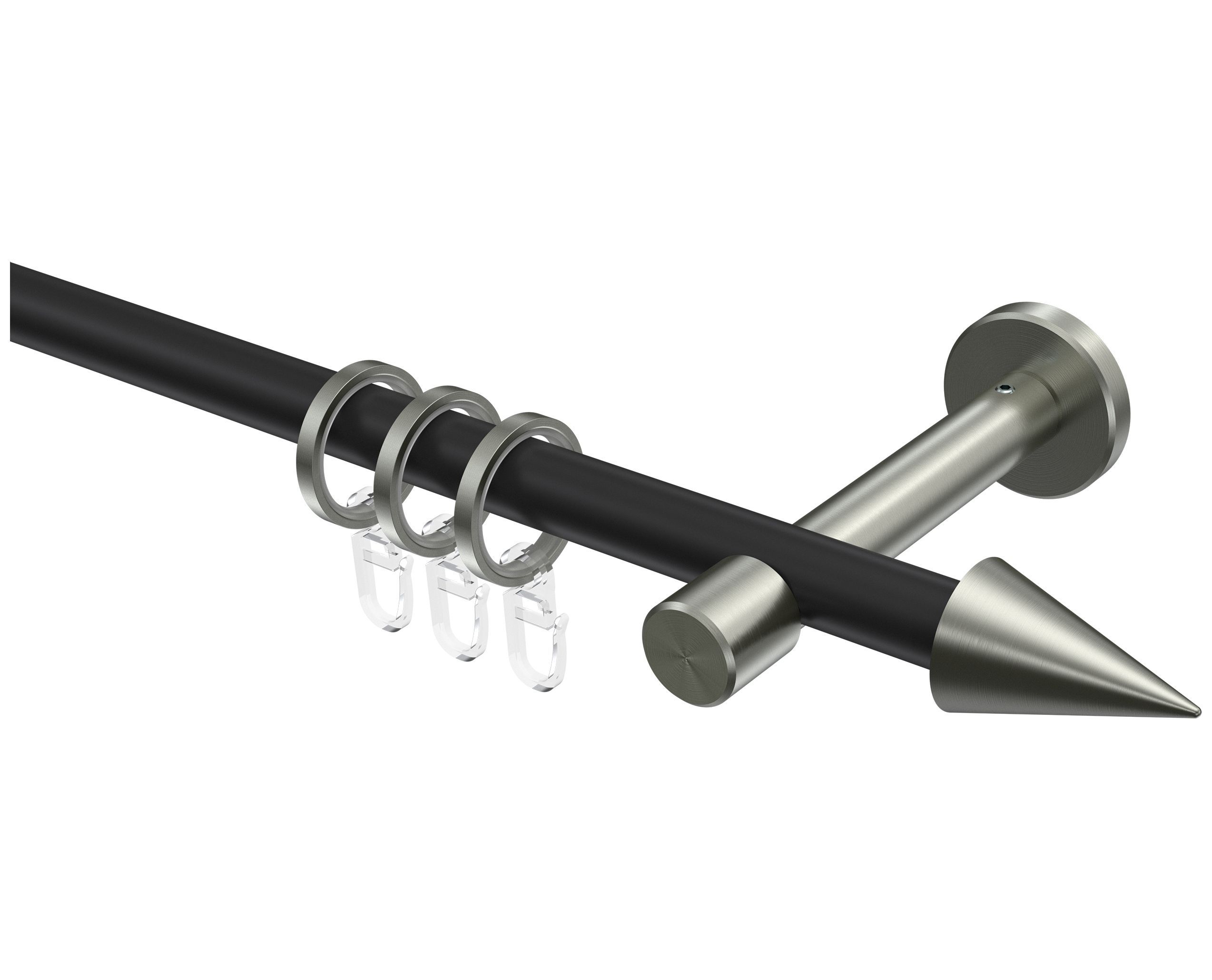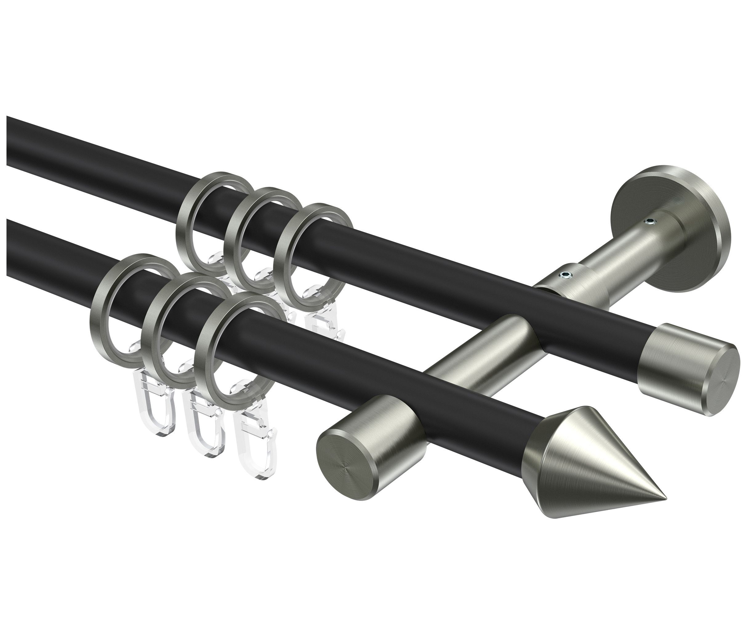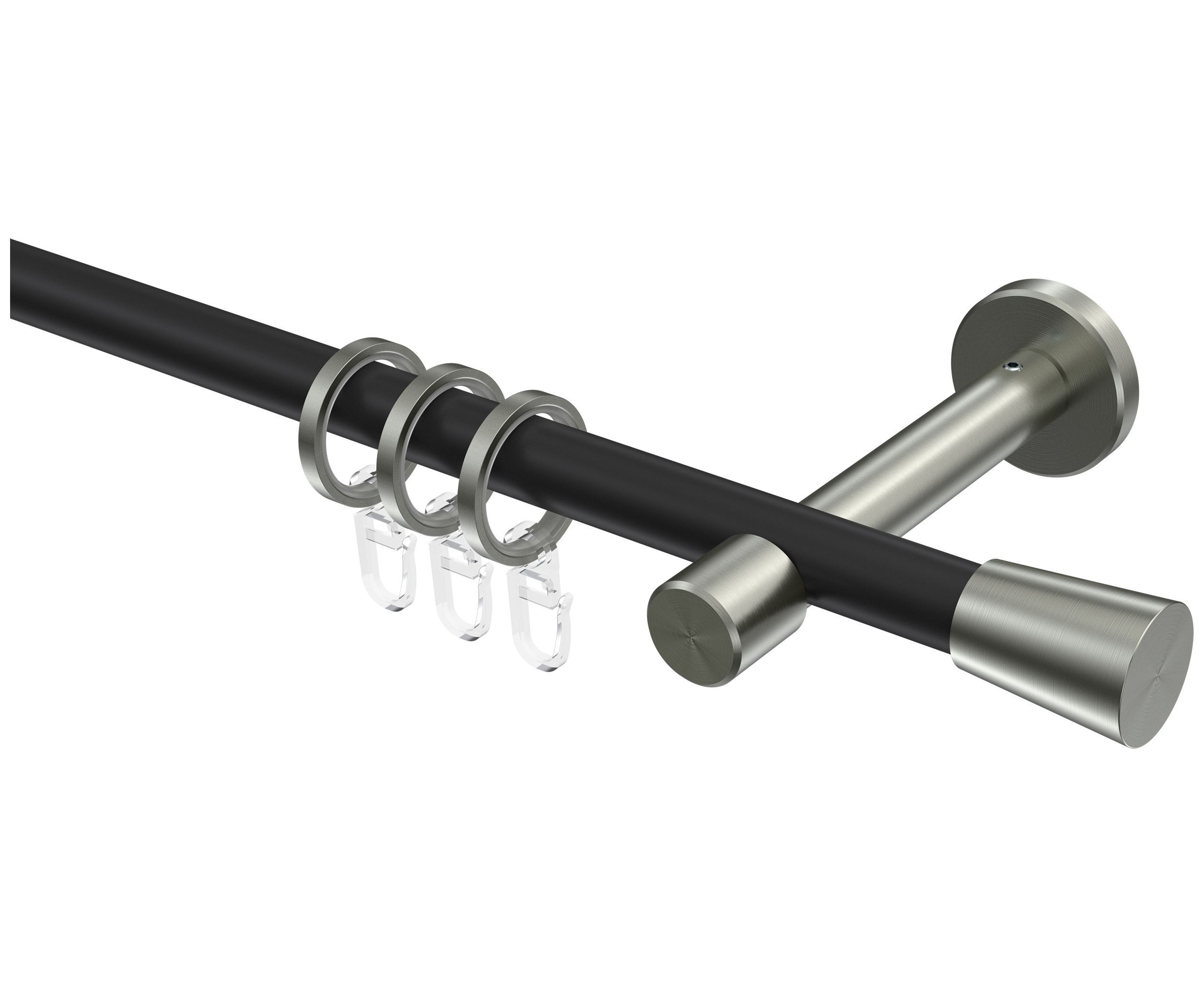 INTERDECO Interdeco Gardinenstangen Schwarz / Edelstahl-Optik 16 mm Ø Sinux