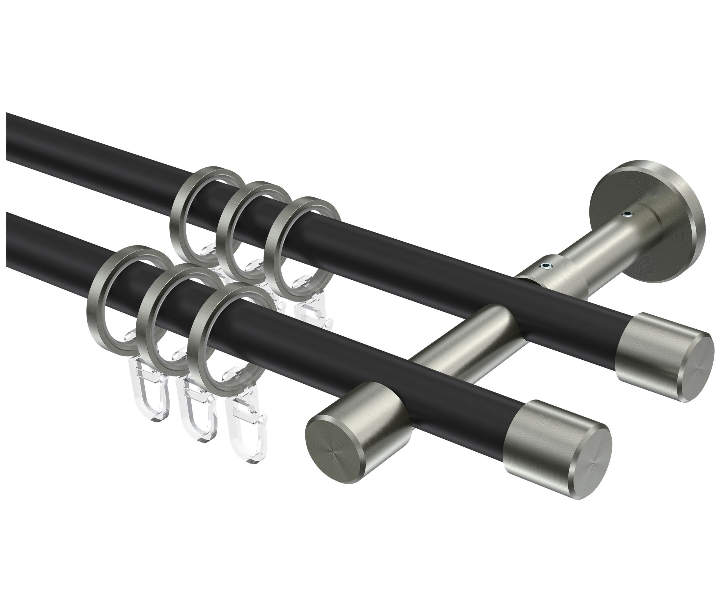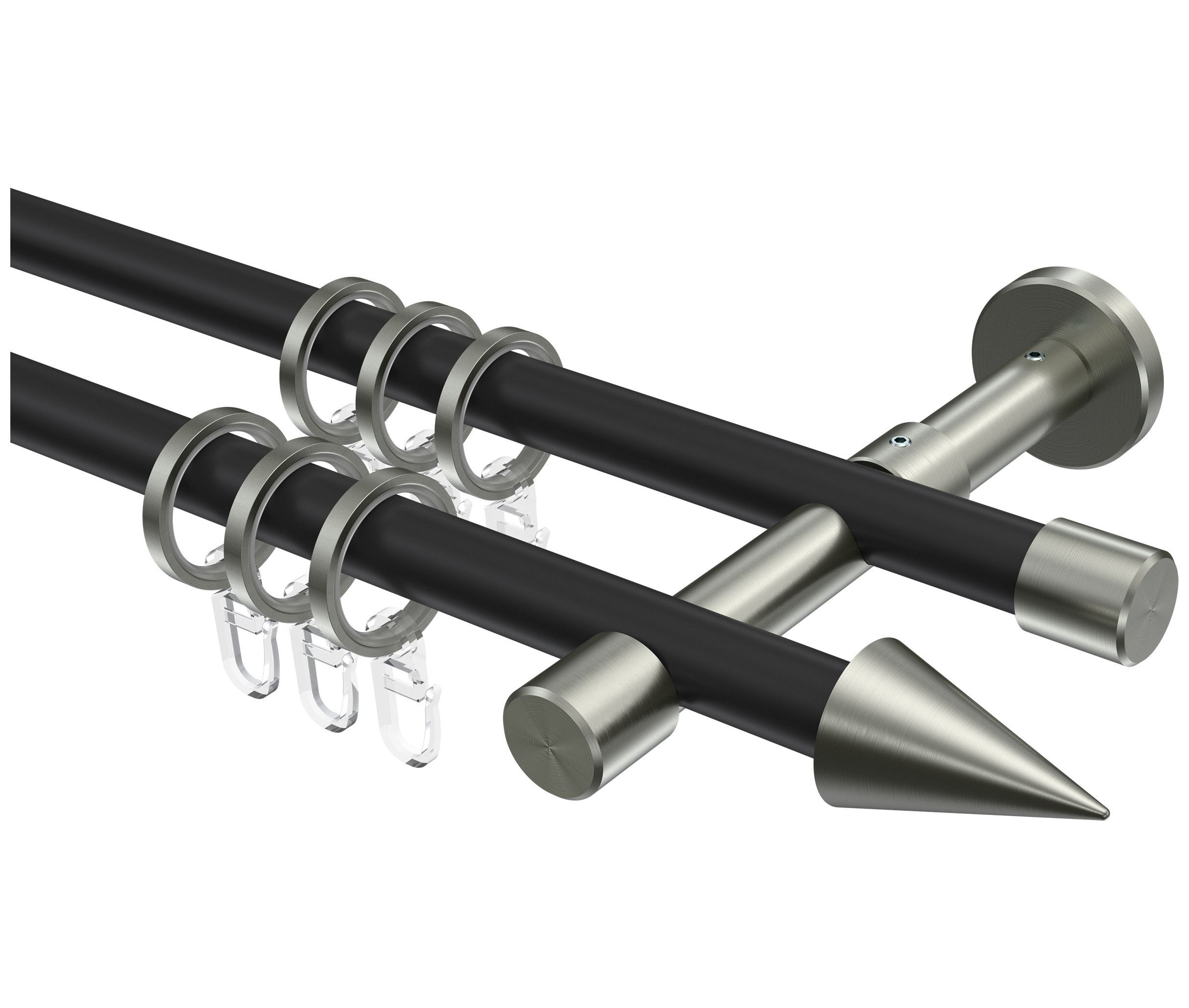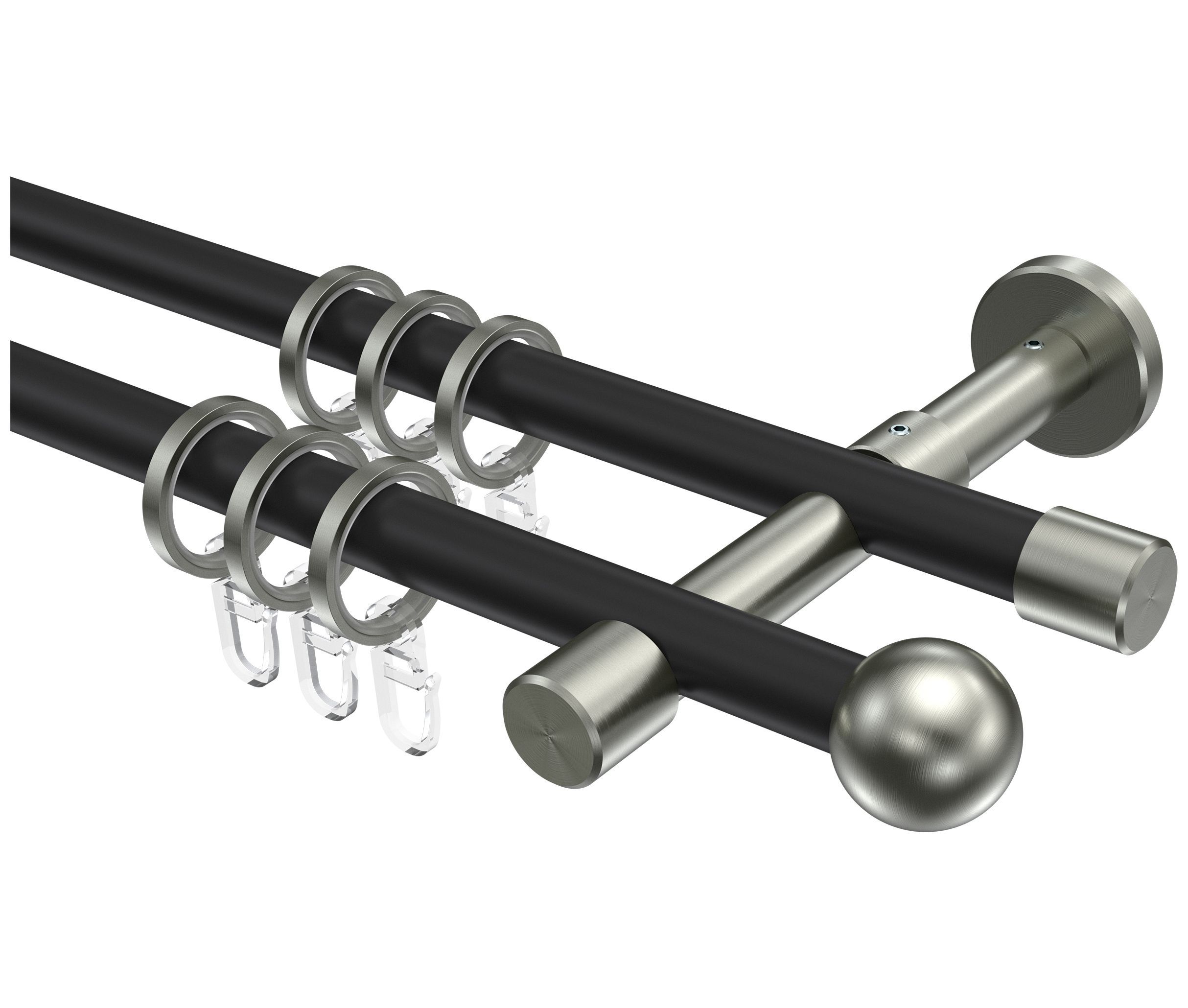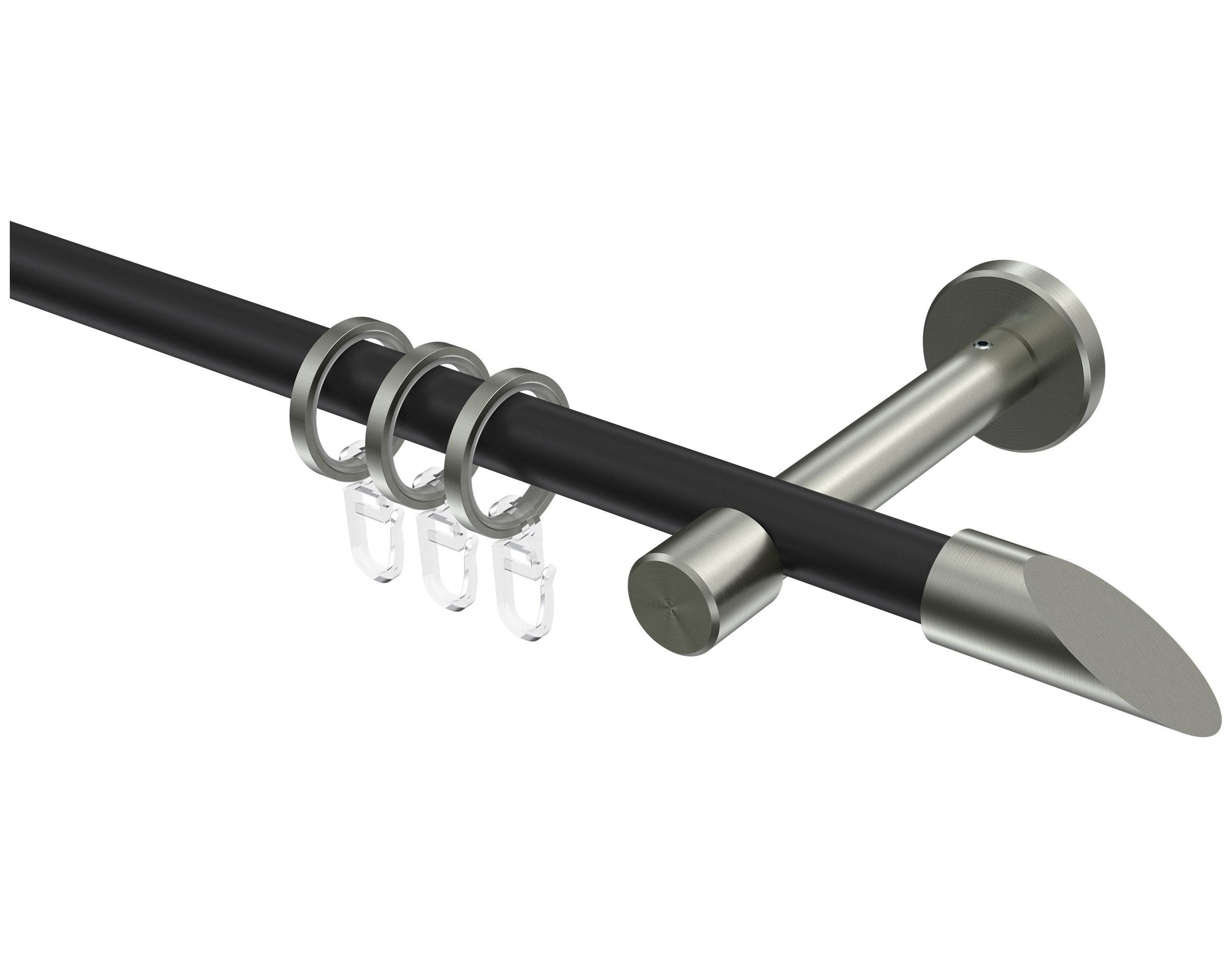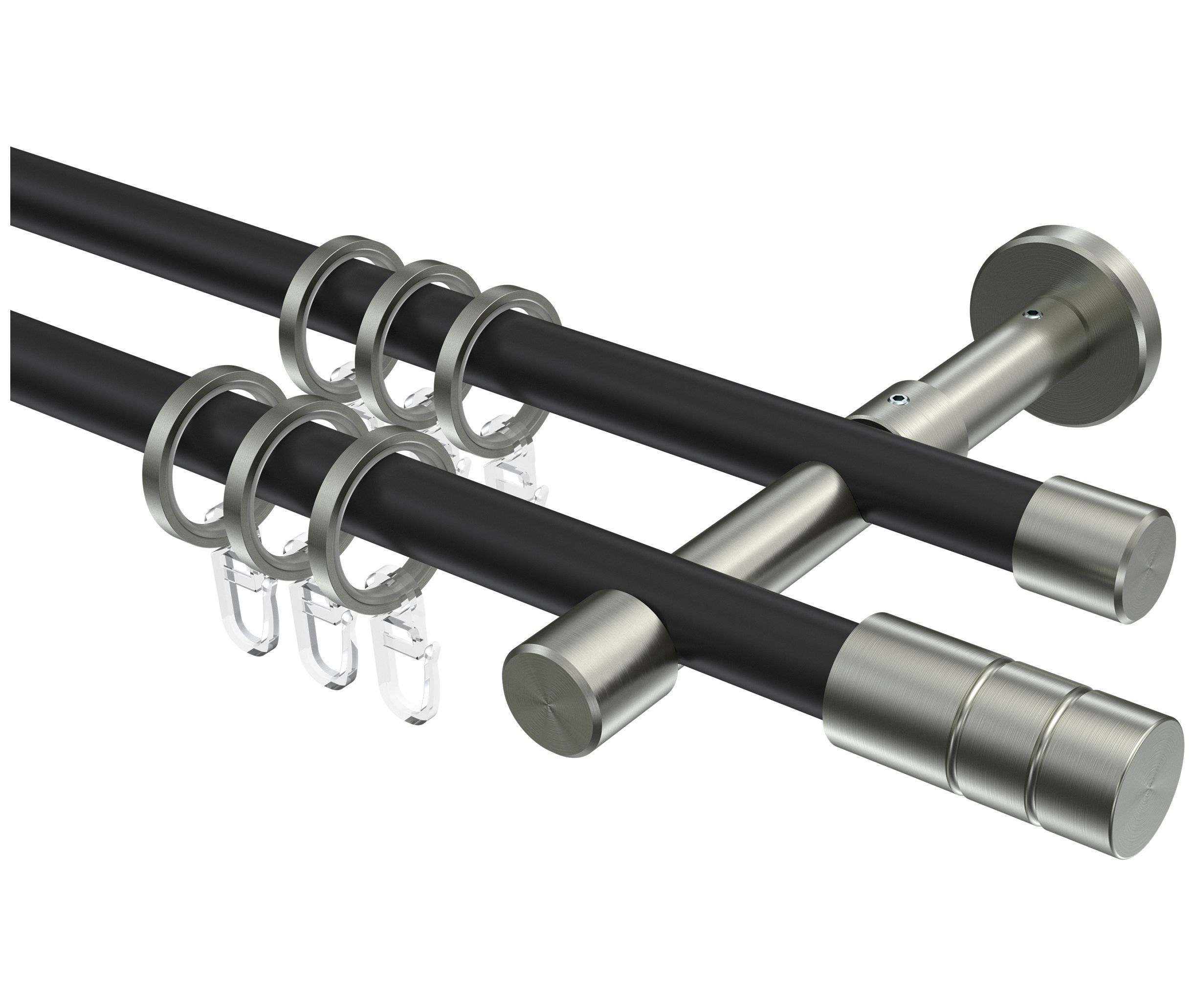 INTERDECO Interdeco Gardinenstangen Schwarz / Edelstahl-Optik 16 mm Ø Sinux