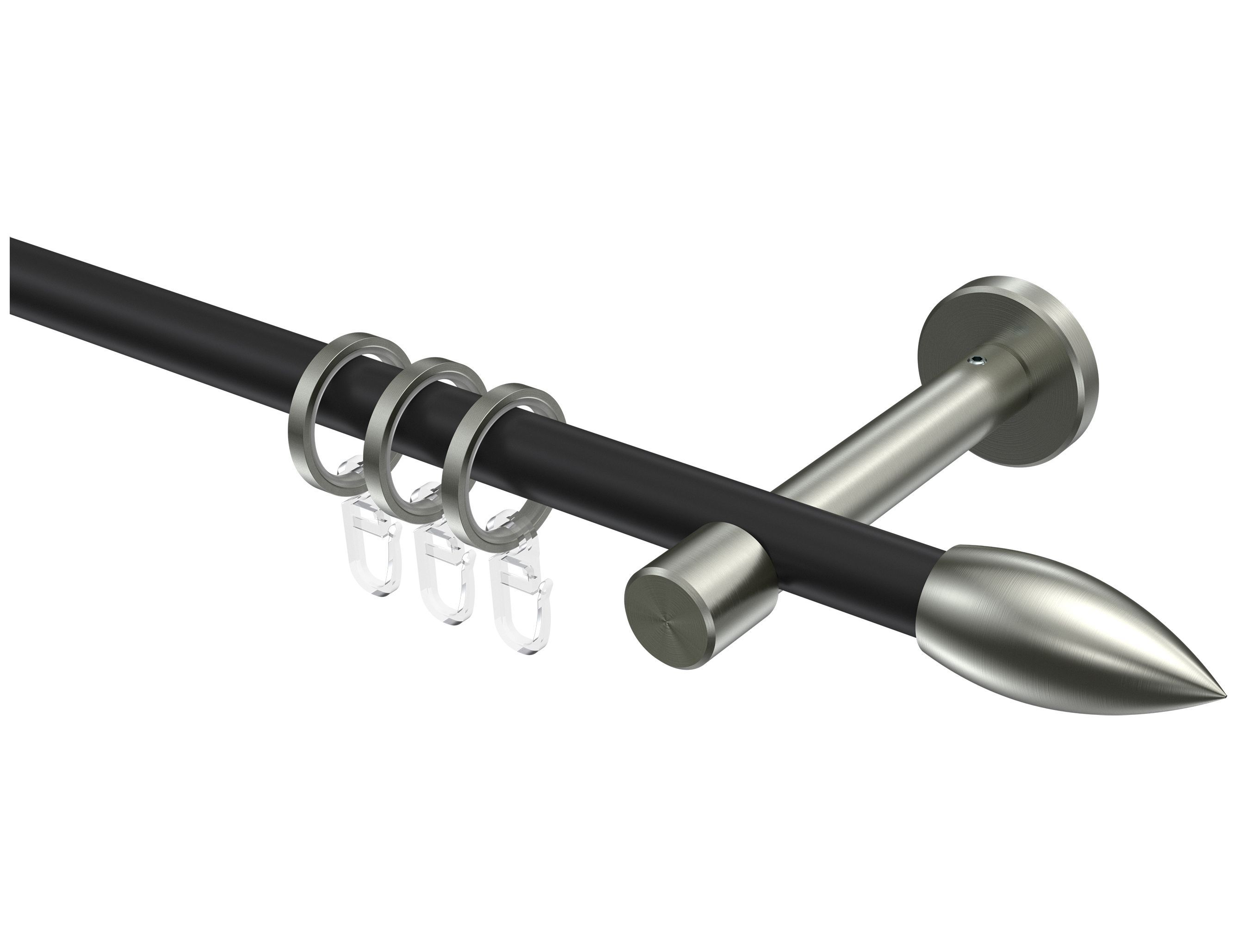 Gardinenstangen / Vorhangstangen Schwarz / Edelstahl-Optik 16 mm Ø