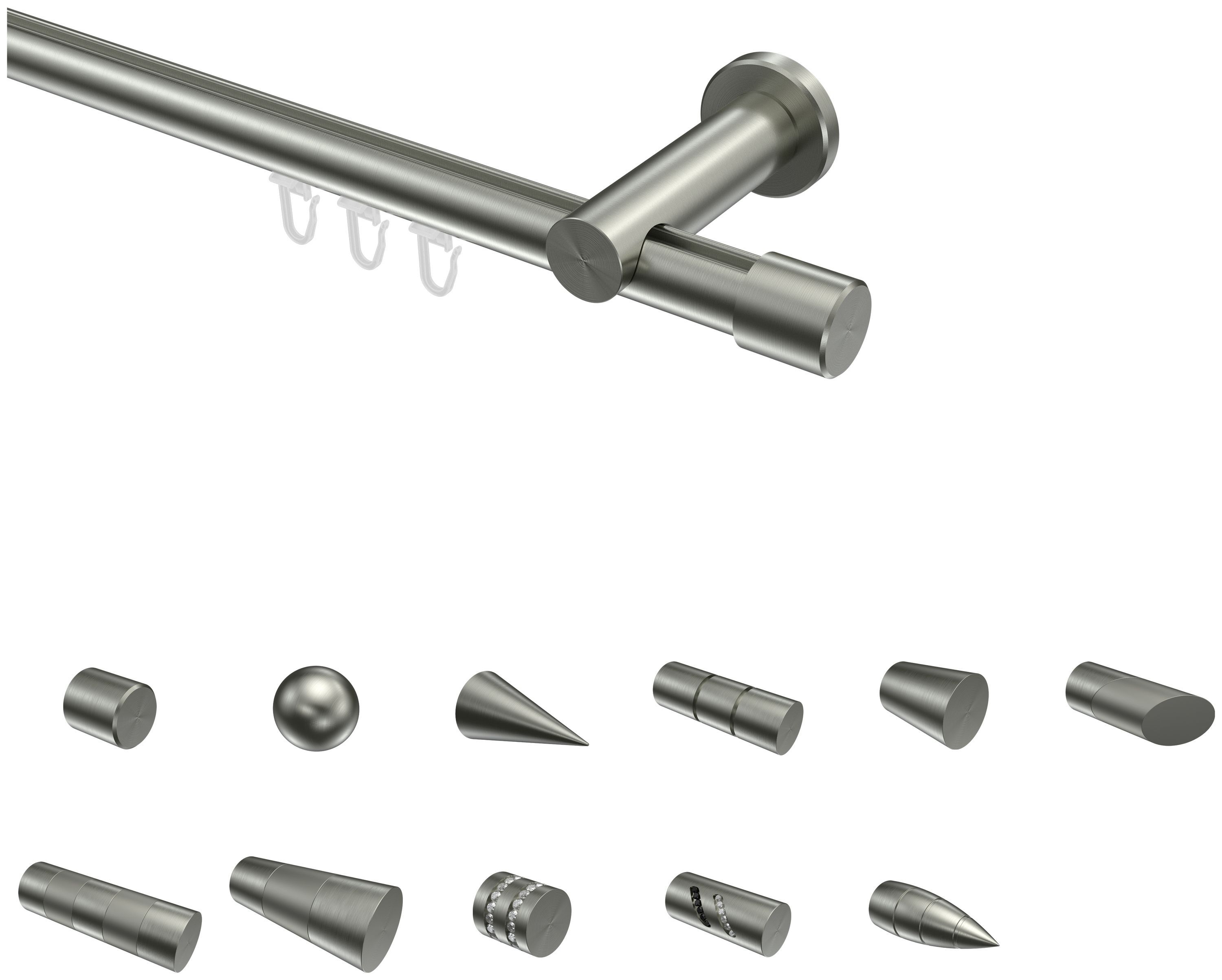 Innenlaufstangen / Gardinenstangen Edelstahl-Optik 20 mm Ø