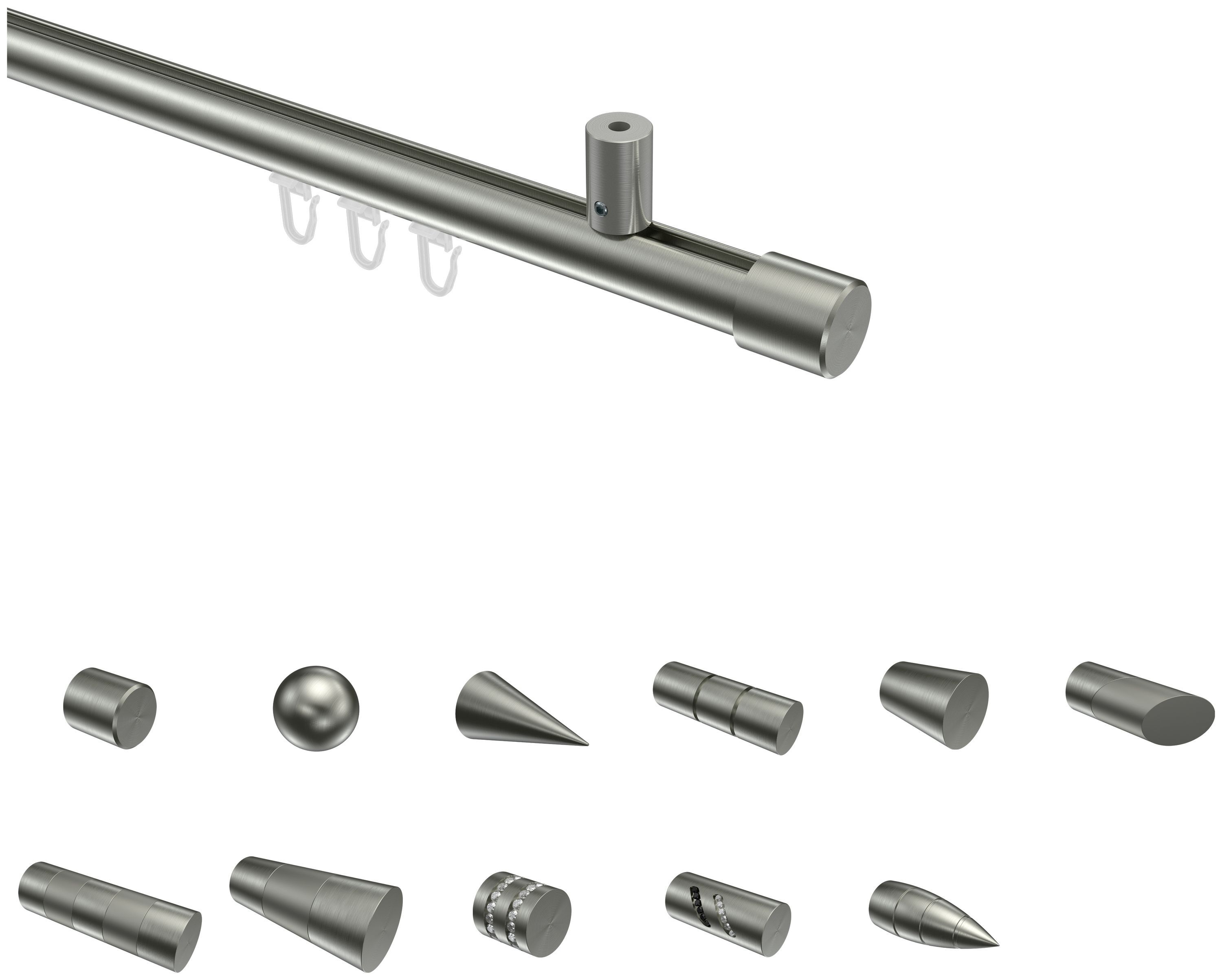 Innenlaufstangen Deckenstangen Edelstahl-Optik 20 mm Durchschitt - Sie kaufen 1 Stück Innenlauf-Gardinenstange Modell Sonius für die Deckenmontage. An dieser Innenlaufstange können Sie Ihre Gardinendekoration einfach befestigen und somit eine wohnliche Fenstergestaltung für Ihr Zuhause schaffen. Die... Mehr
