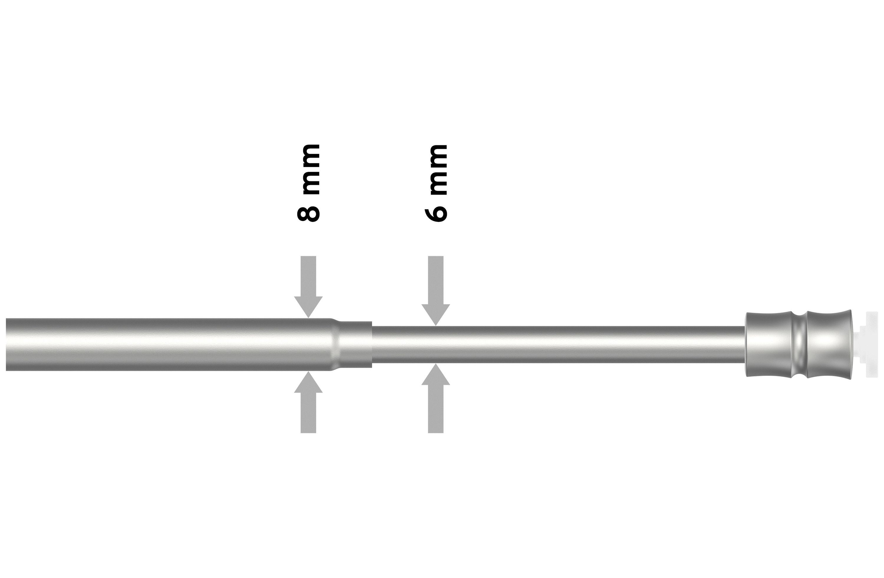 Klemmstangen ausdrehbare Scheibenstangen Silbergrau 8 6 mm Durchschitt - Sie kaufen 1 Packung Klemmstangen Modell Flexo. An diese ausdrehbaren Scheibenstangen können Sie Ihre leichte Scheibengardinen oder Panneaux einfach befestigen und somit eine wohnliche Fenstergestaltung für Ihr Zuhause schaffen... Mehr