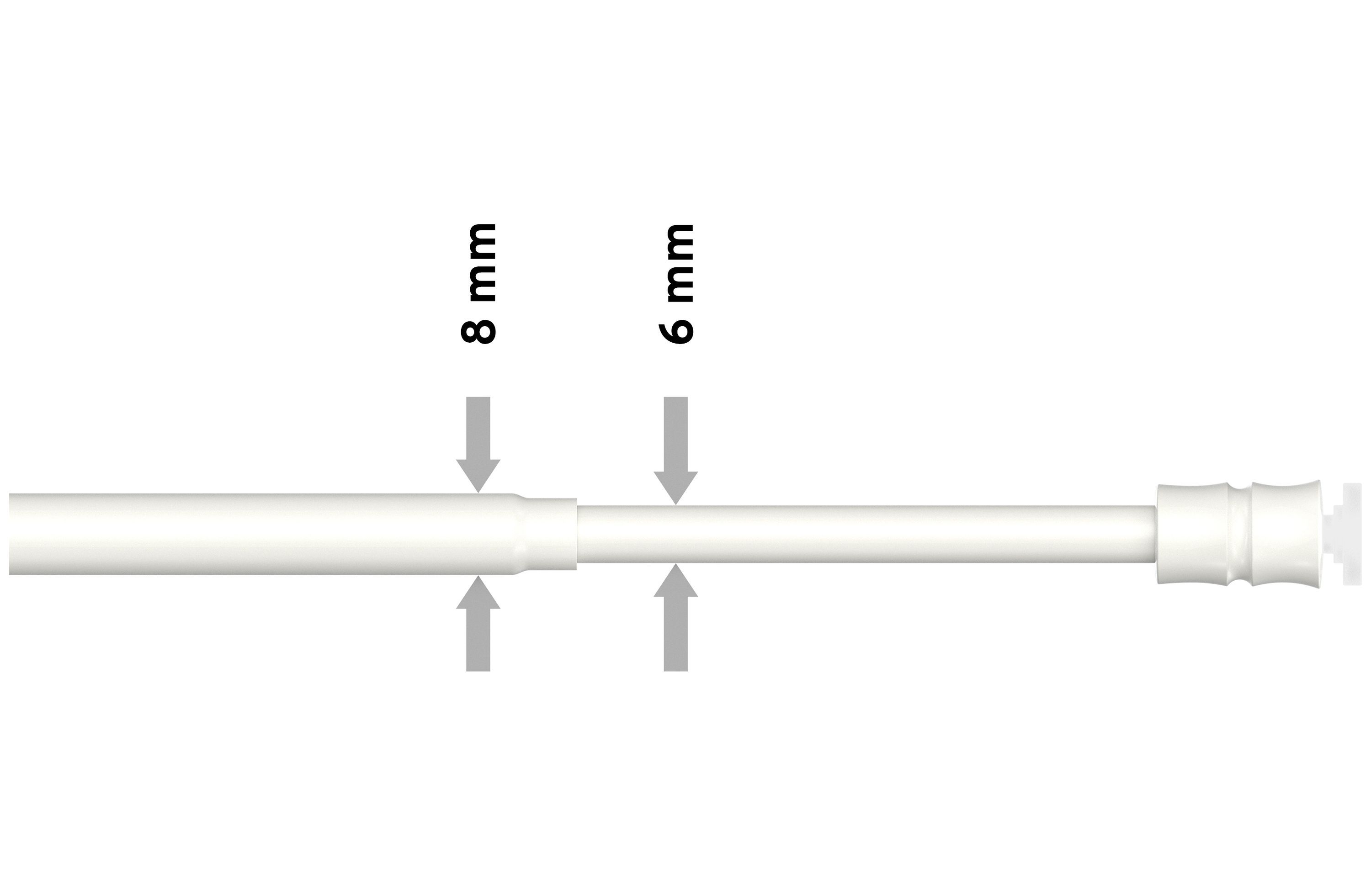 Klemmstangen ausdrehbare Scheibenstangen Weiß 8 6 mm Durchschitt - Sie kaufen 1 Packung Klemmstangen Modell Flexo. An diese ausdrehbaren Scheibenstangen können Sie Ihre leichte Scheibengardinen oder Panneaux einfach befestigen und somit eine wohnliche Fenstergestaltung für Ihr Zuhause schaffen. Dies... Mehr