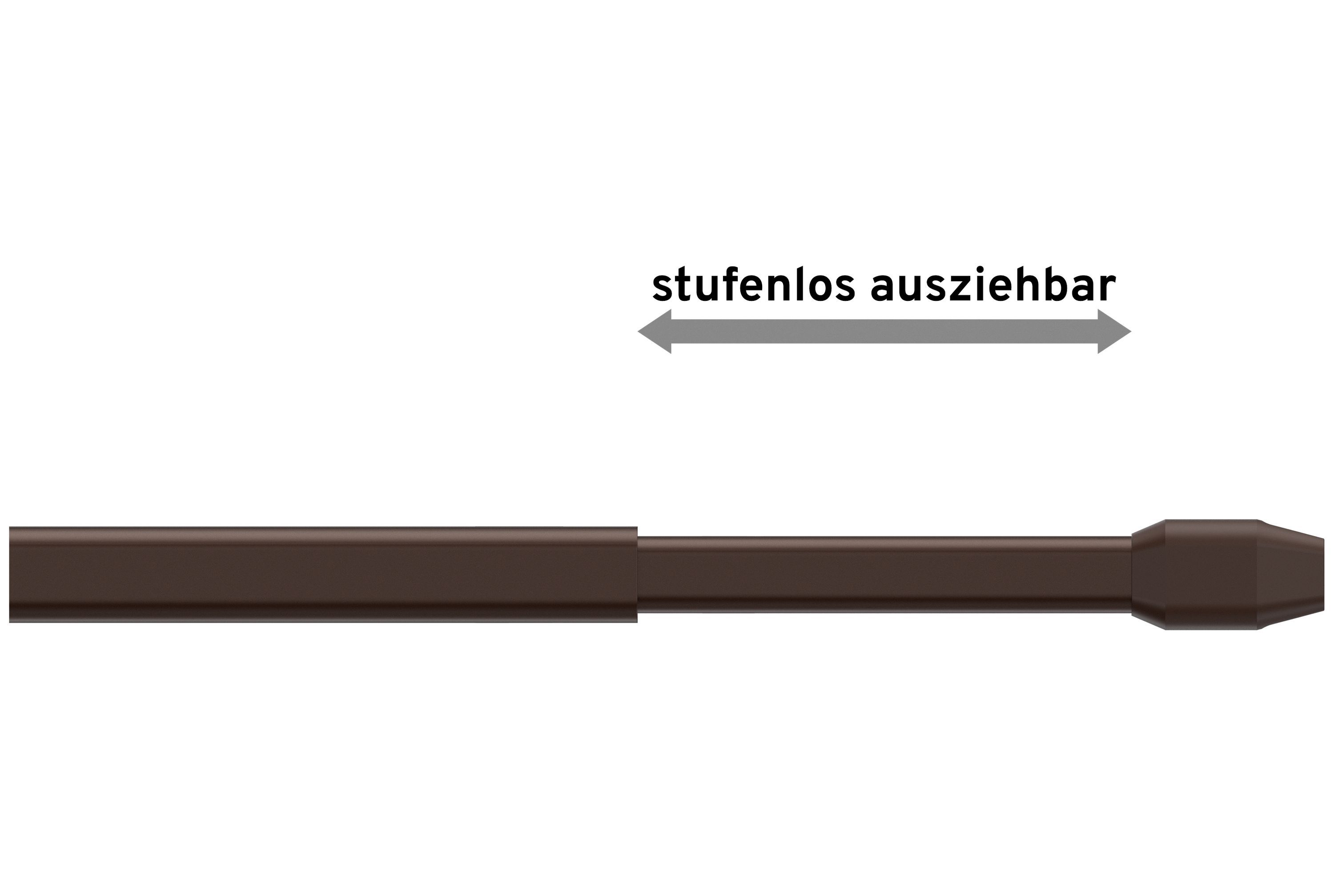 Vitragestangen ausziehbare Scheibenstangen Braun oval - Sie kaufen 1 Packung Vitragestangen Modell Geno. An diese ausziehbaren Scheibenstangen können Sie Ihre leichte Scheibengardinen oder Panneaux einfach befestigen und somit eine wohnliche Fenstergestaltung für Ihr Zuhause schaffen. Diese Scheiben... Mehr