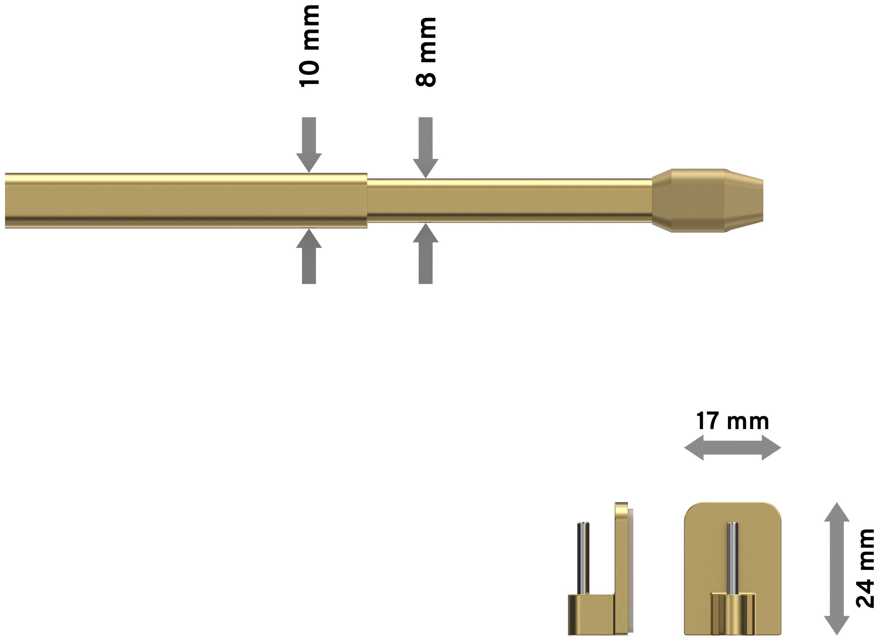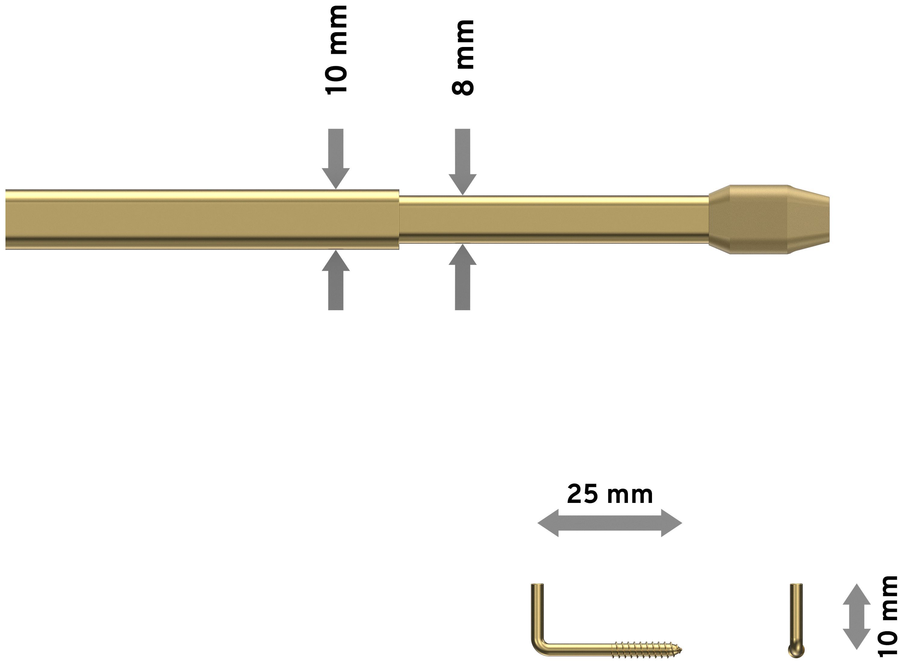 INTERDECO Interdeco Vitragestangen mit Klebehaken Messing oval ausziehbar Geno, 8 Stück