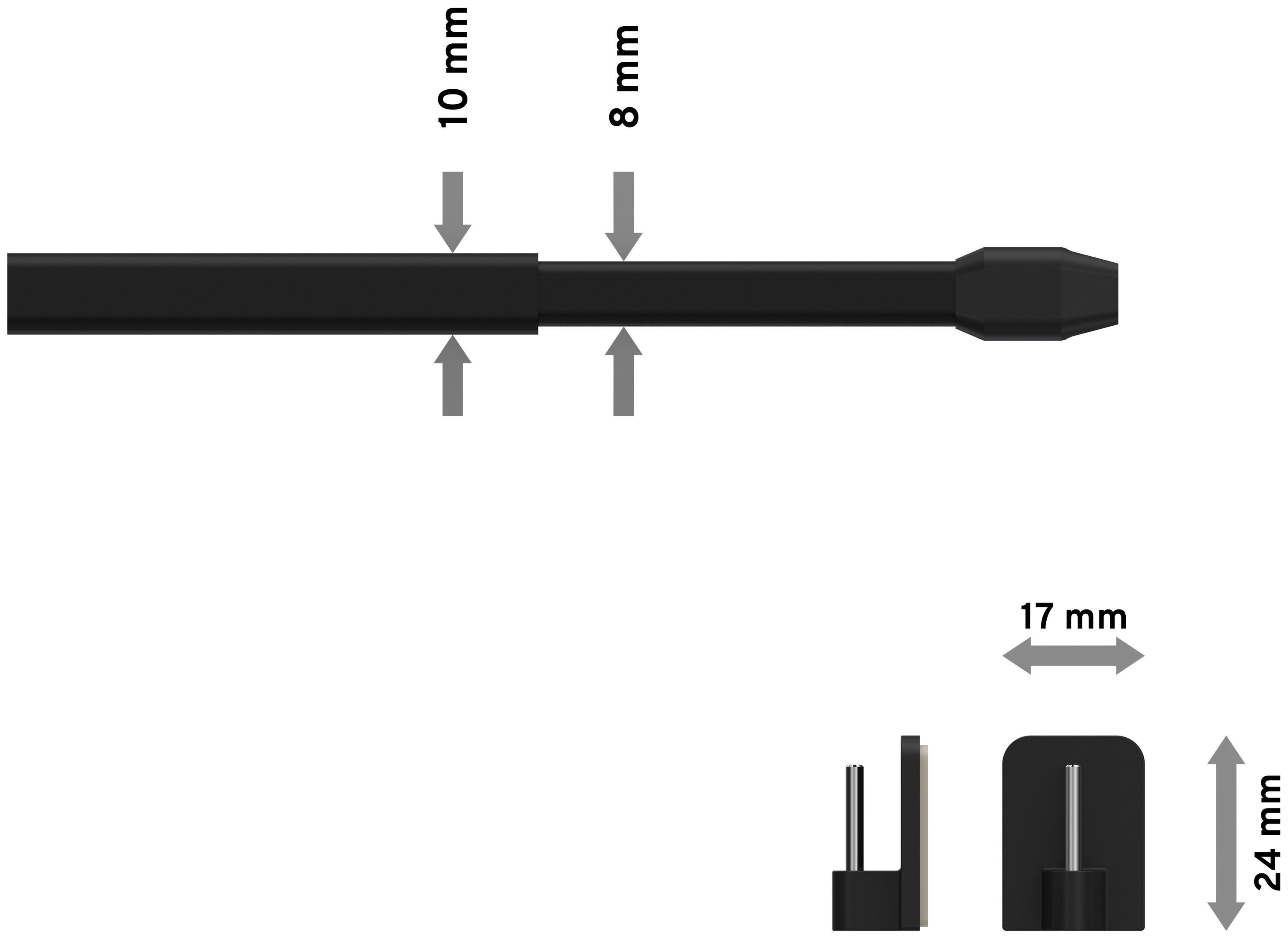 INTERDECO Interdeco Vitragestangen mit Klebehaken Schwarz oval ausziehbar Geno, 2 Stück