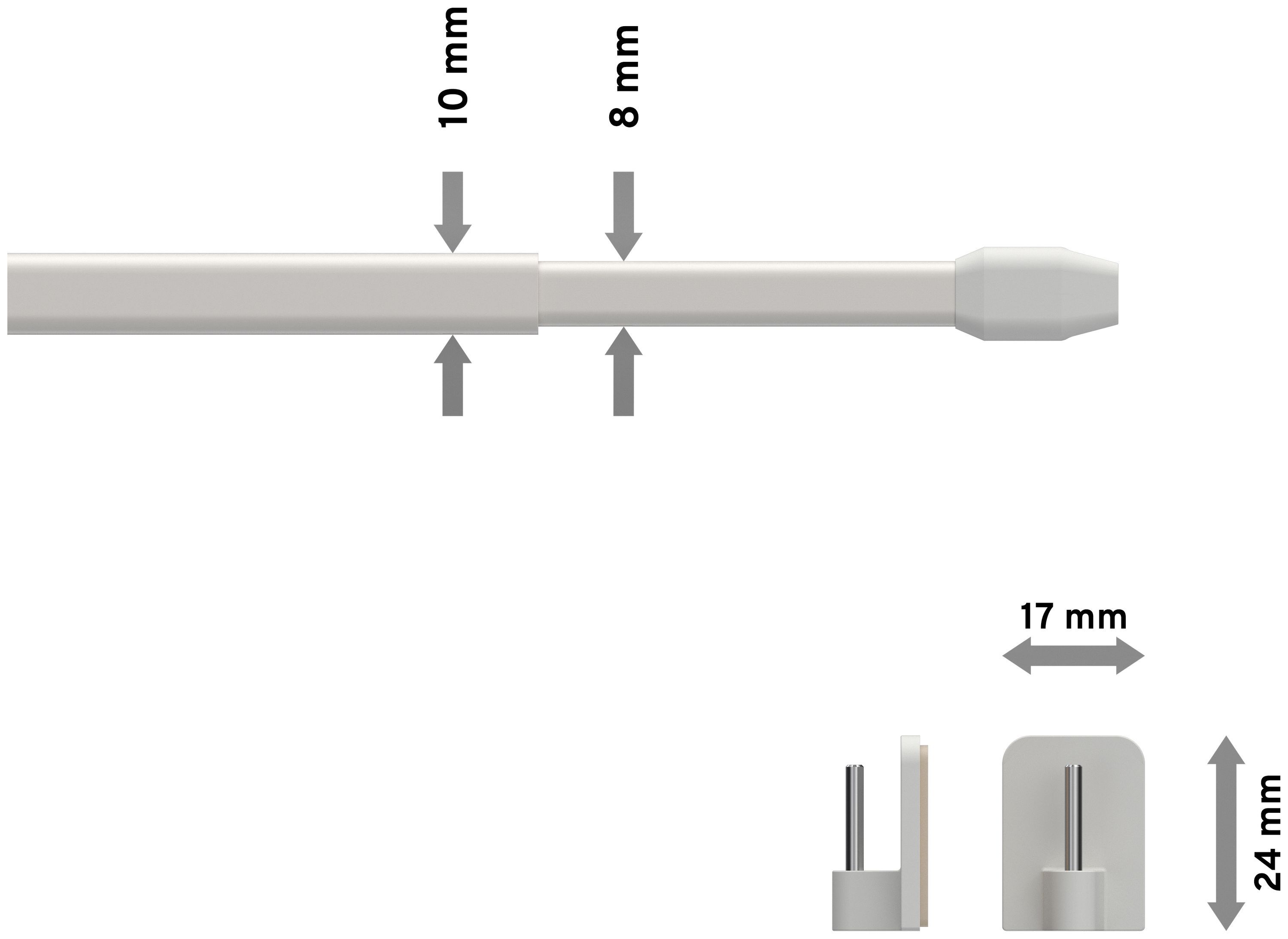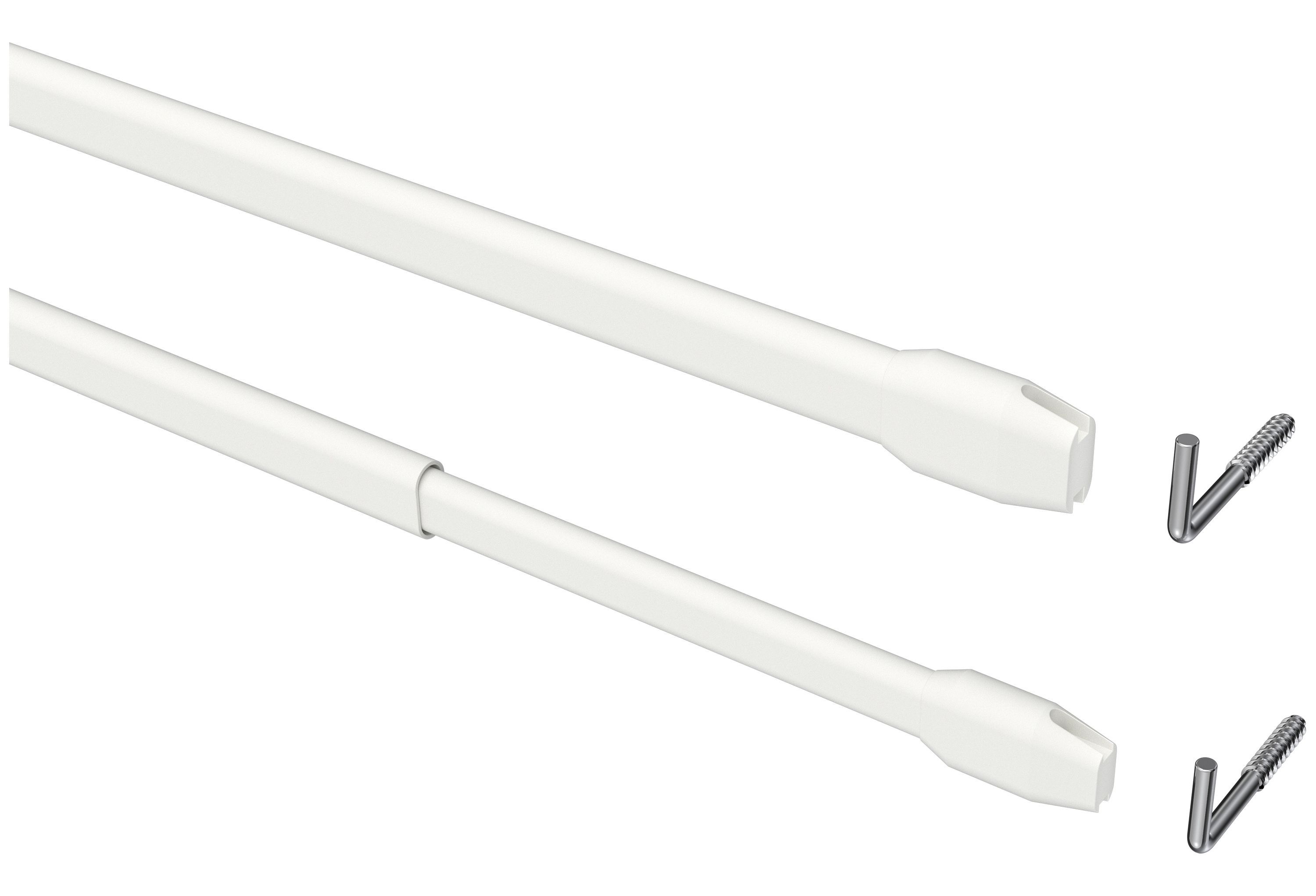 Vitragestangen ausziehbare Scheibenstangen mit Klebehaken Weiß oval - Sie kaufen 1 Packung Vitragestangen Modell Geno. An diese ausziehbaren Scheibenstangen können Sie Ihre leichte Scheibengardinen oder Panneaux einfach befestigen und somit eine wohnliche Fenstergestaltung für Ihr Zuhause schaffen. ... Mehr