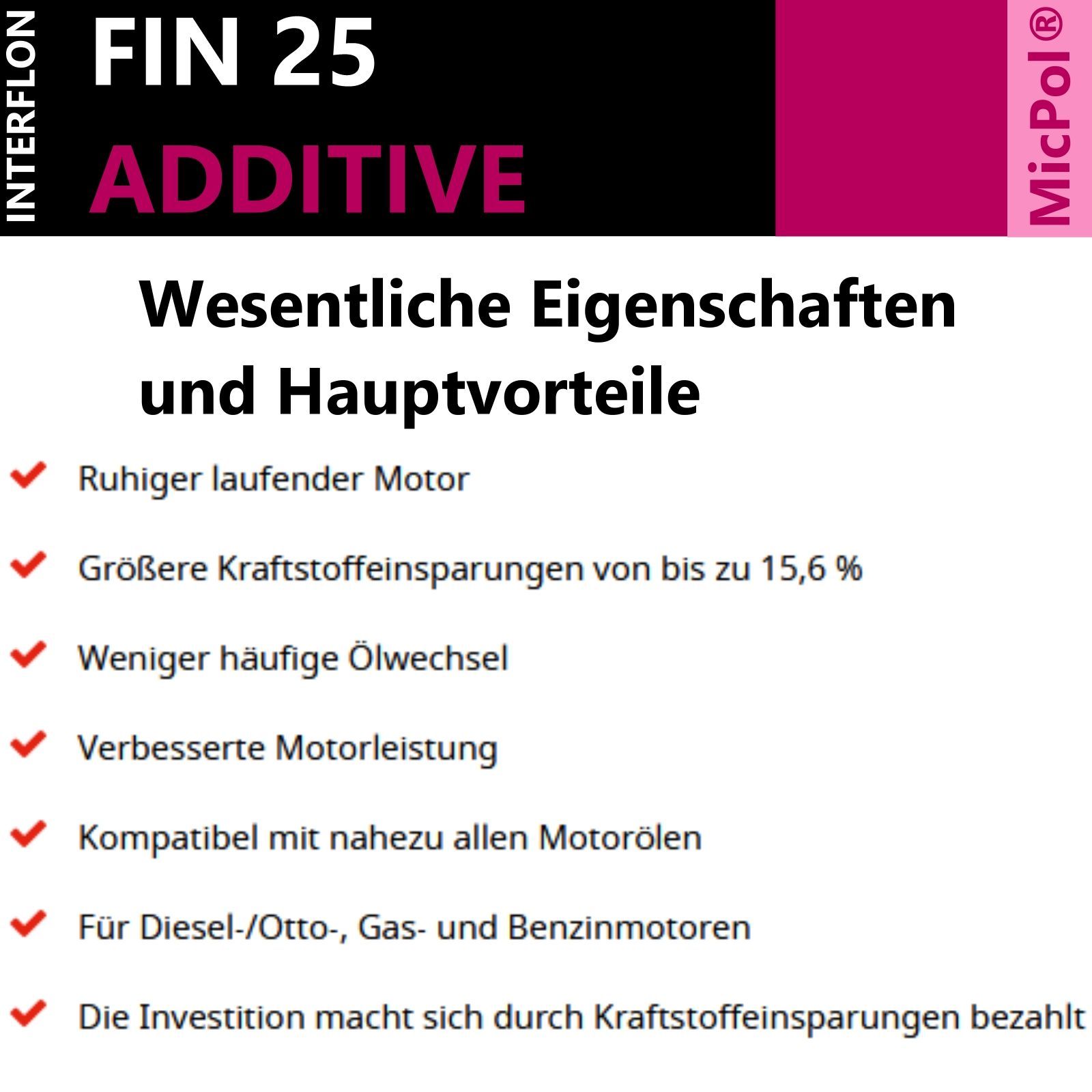 Interflon FIN 25 Motoröl-Additive 100ml senkt Kraftstoffverbrauch Verschleiß Öl